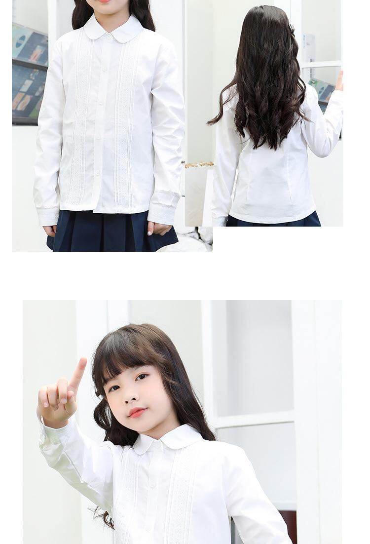 シャツ キッズ 長袖 白 春秋 レース コットン 女の子 子供服 ブラウス イートン校 制服 発表会 110cm 120cm 130cm 140cm 150cm 160cm 170cm