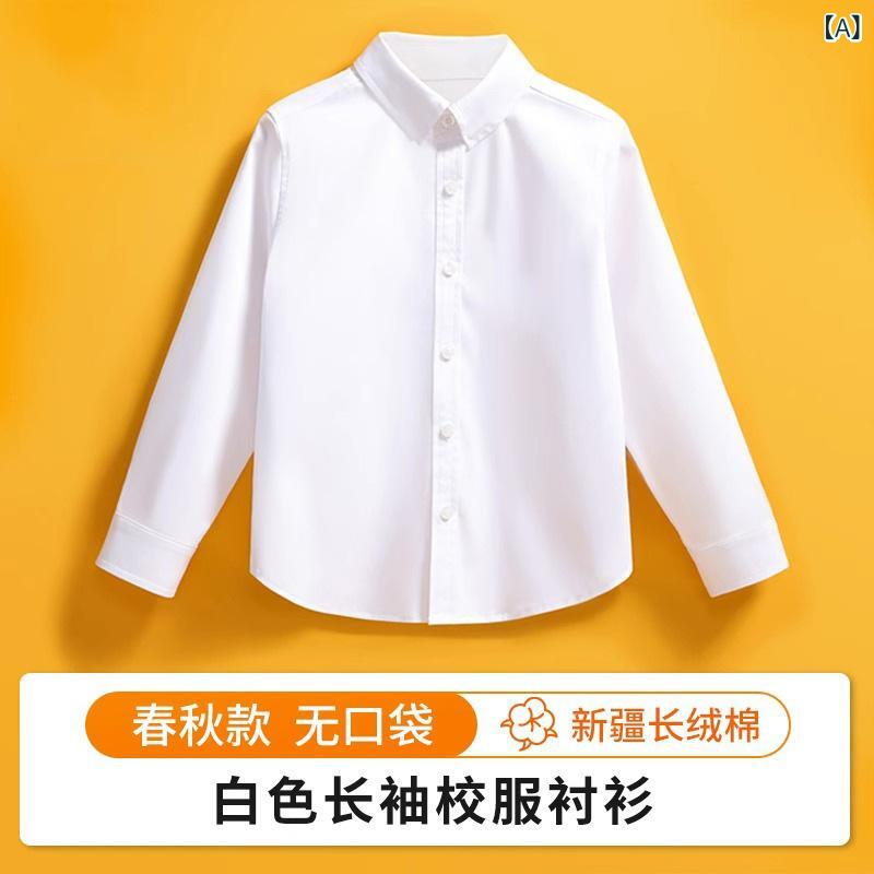 シャツ 子供 白シャツ 長袖 春秋 男女兼用 小学生 スクールシャツ 制服 発表会 綿100% 110cm 120cm 130cm 140cm 150cm 160cm 170cm 180cm