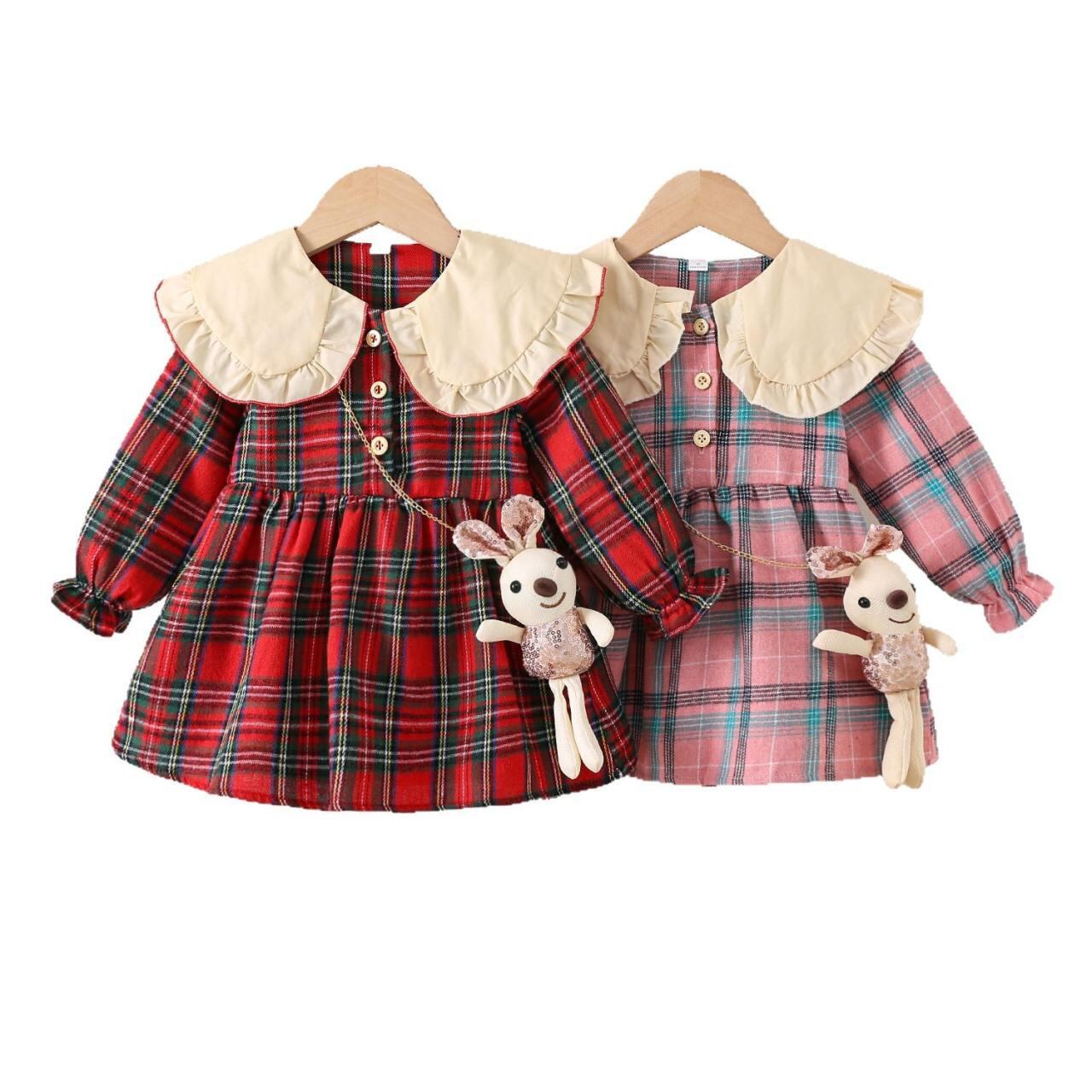 子供服 長袖シャツ 春秋 女の赤ちゃん 格子柄 トップス スカート 女の子 チュニック 小さなウサギ飾り 幼児 かわいい ピンク系 レッド 73 80 90 100