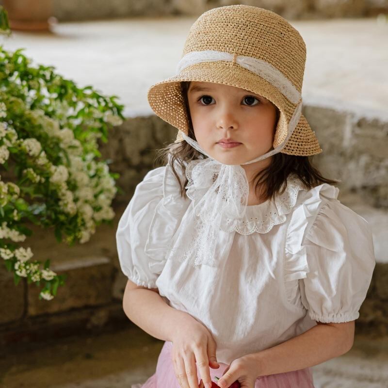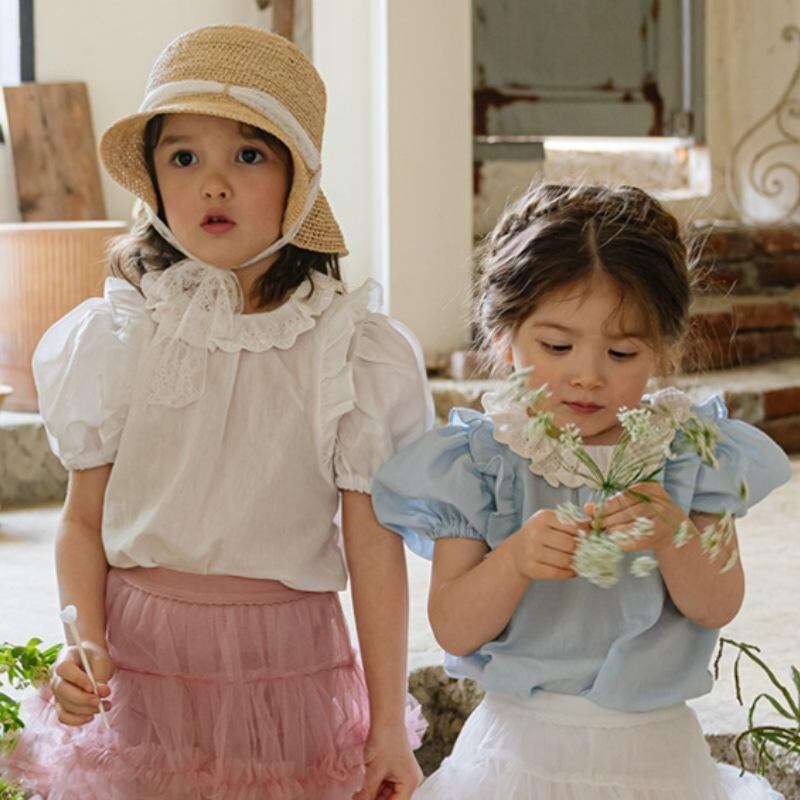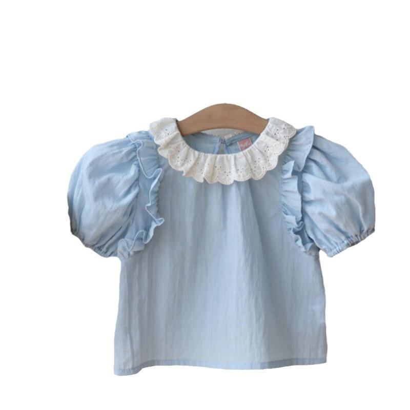 子供服 シャツ 半袖 ピュアコットン ベビー ガールズ ドールシャツ かわいい 襟フリル トップス プリンセススタイル 夏物 接触冷感 吸湿速乾 90cm 100cm 110cm 120cm 130cm 140cm 150cm ホワイト ライトブルー