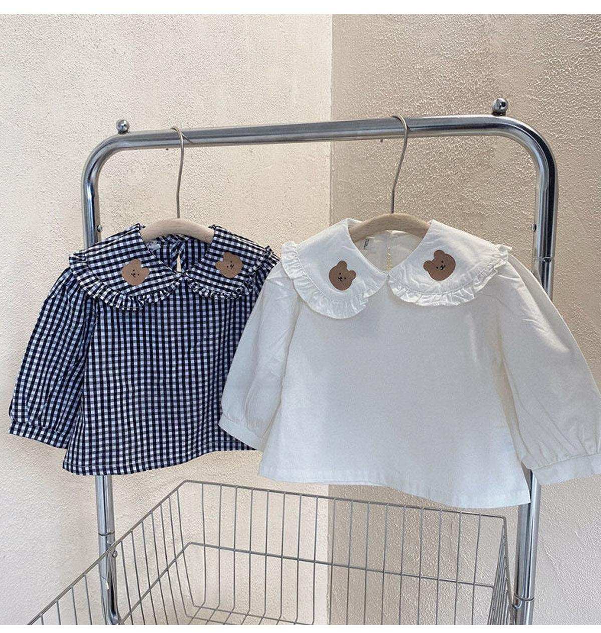 シャツ 女の子 長袖 格子柄 コットン 襟付き トップス 韓国風 かわいい おしゃれ 子供服 ベビー服 赤ちゃん 普段着 春秋 冬 80 90 100 110 120