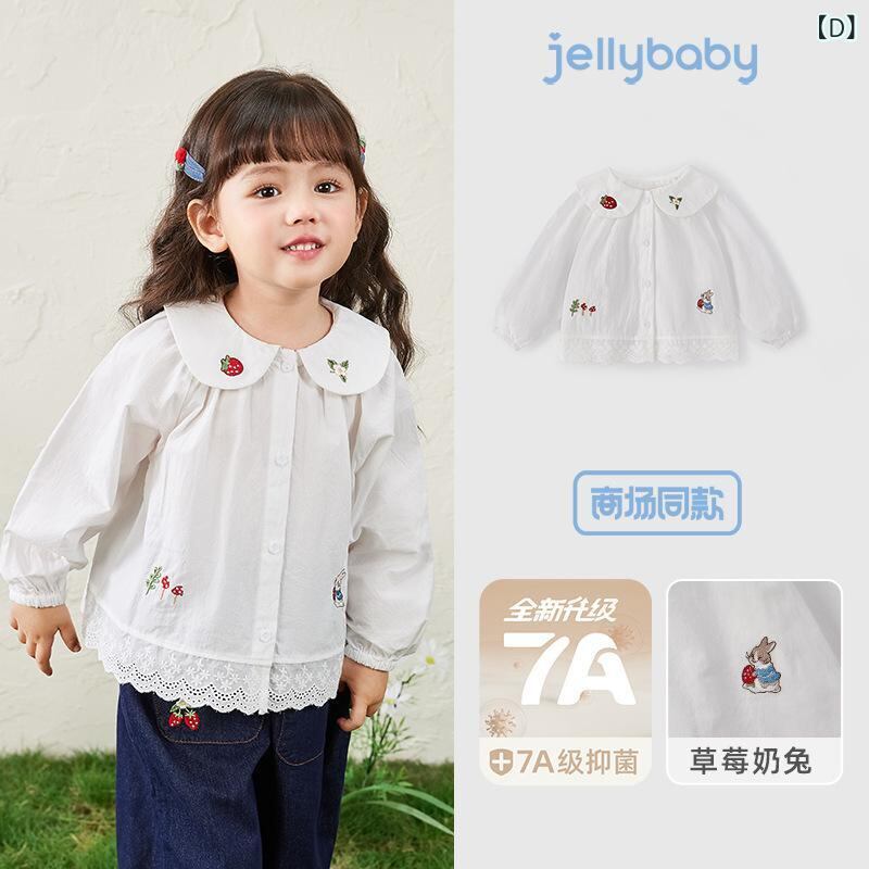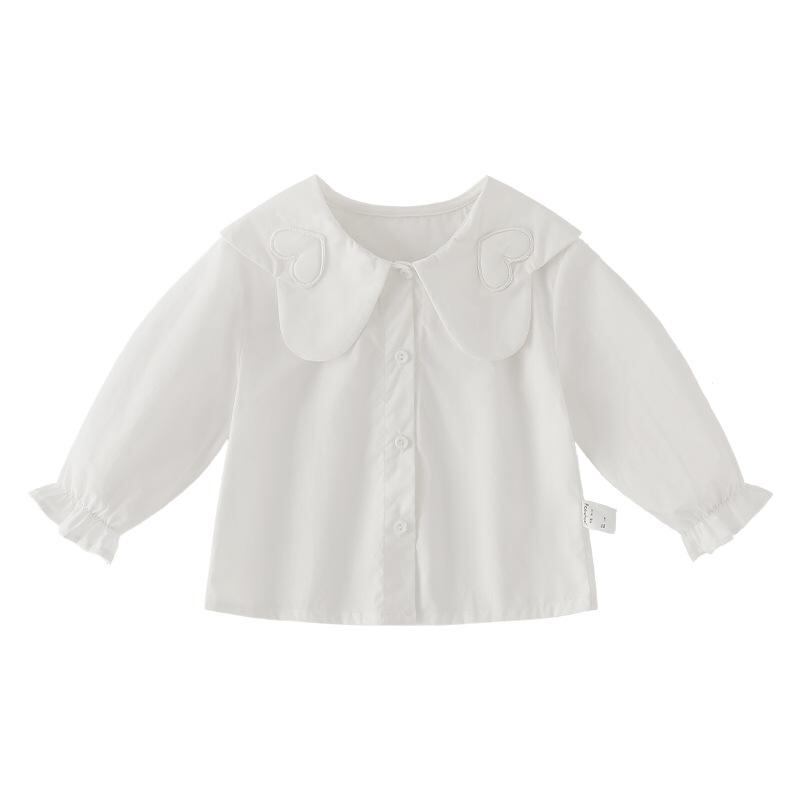 シャツ キッズ 女の子 長袖 春秋 ベビー 子供服 トップス フリル襟 丸襟 かわいい 白 コットン100%
