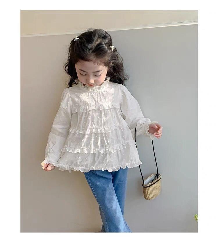 シャツ キッズ 長袖 コットン 春秋 トップス 女の子 女児 立ち襟 フリル 100cm 110cm 120cm 130cm 140cm 150cm かわいい 普段着 部屋着 公園着