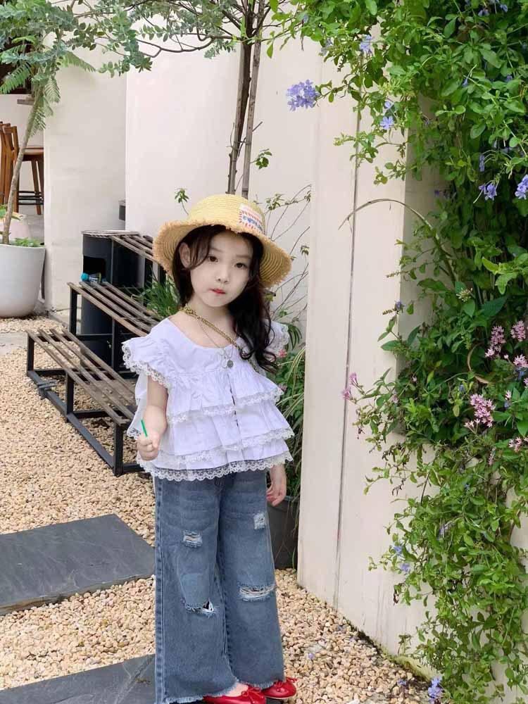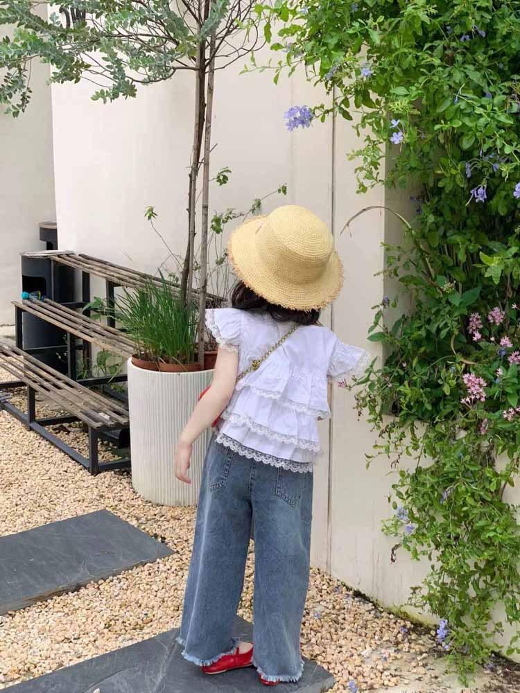 シャツ キッズ ノースリーブ ブラウス フリル 切り替え コットンブレンド かわいい 夏物 トップス 女の子 子供服 普段着