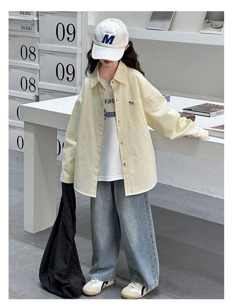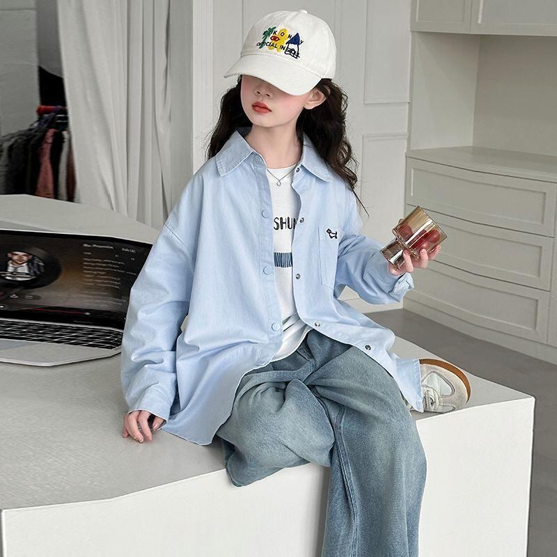 シャツ 女の子 春秋 長袖 中大童 子供服 トップス ブルゾン アウター 普段使い かわいい 犬柄 ブルー イエロー系 130 140 150 160 170