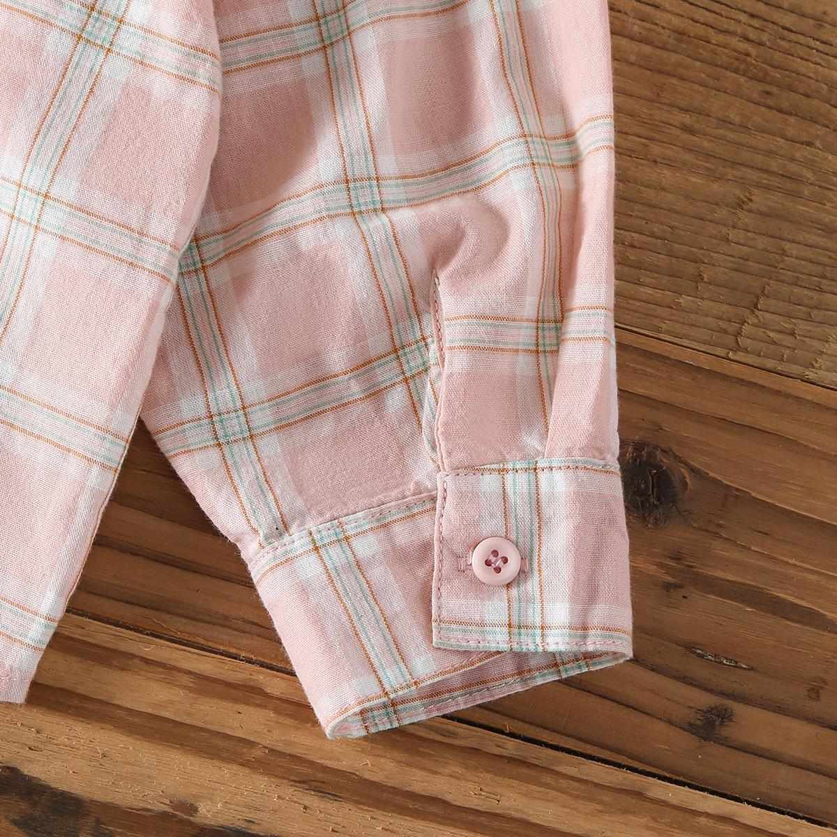 シャツ 女児 長袖 コットン 格子柄 ピンク 刺繍 子犬 春秋 かわいい 普段使い 通学