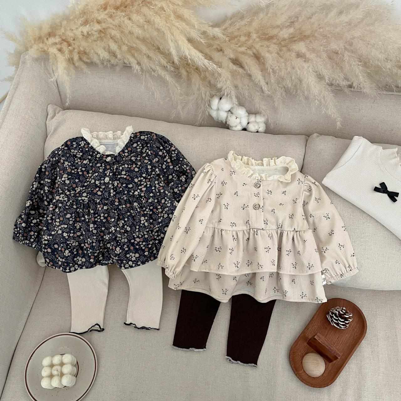 子供服 シャツ 女の子 春秋 花柄 フリル襟 長袖 トップス おしゃれ かわいい プリンセススタイル 普段使い お出かけ着 ブラック ベージュ 66 73 80 90 100