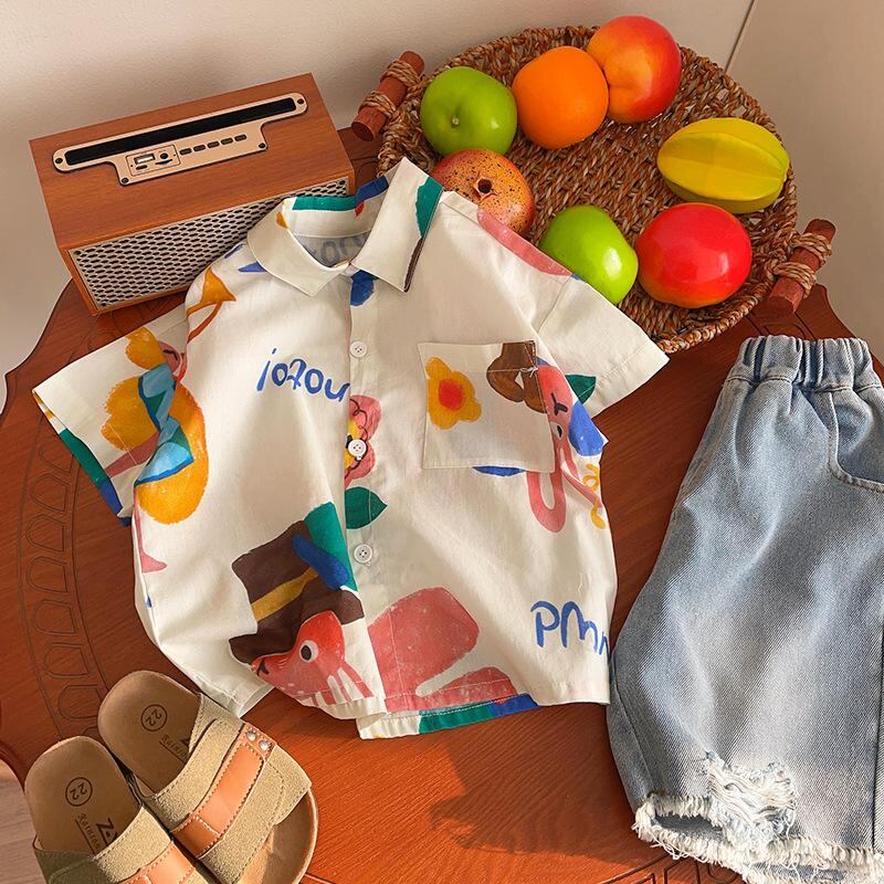 シャツ 子供用 春夏 半袖 長袖 男女兼用 コットン100% トップス カトゥーン柄 花柄 総柄 柔らかい 肌に優しい かわいい おしゃれ 80cm 90cm 100cm 110cm 120cm 130cm 140cm 150cm