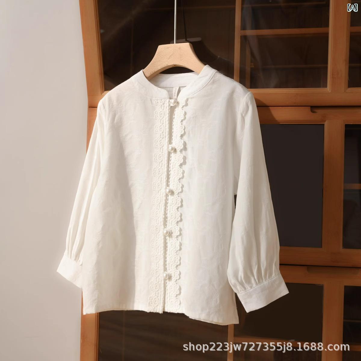 シャツ 子供 女の子 長袖 薄手 コットン 新中国スタイル パールボタン スタンドカラー トップス ブラウス