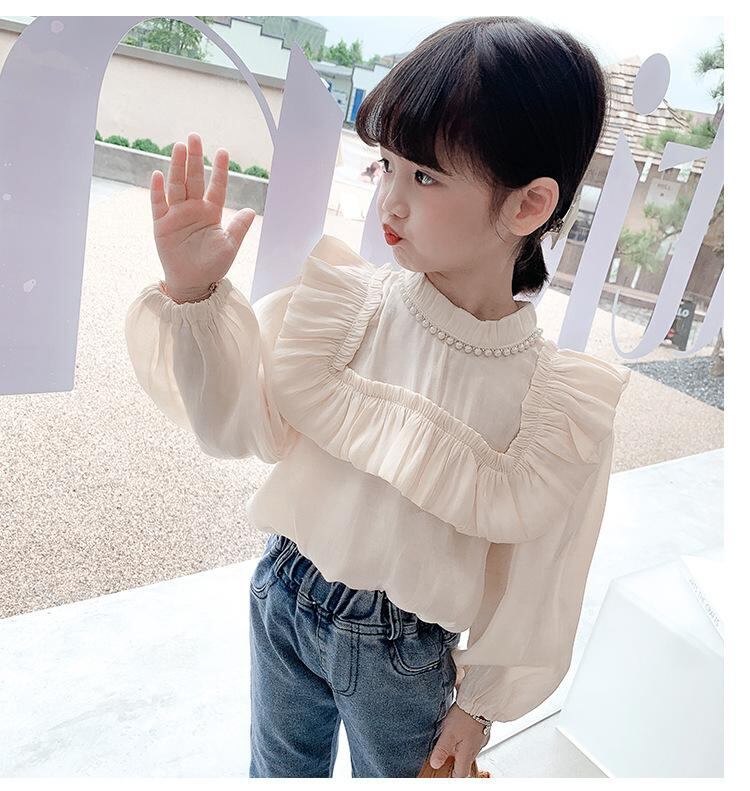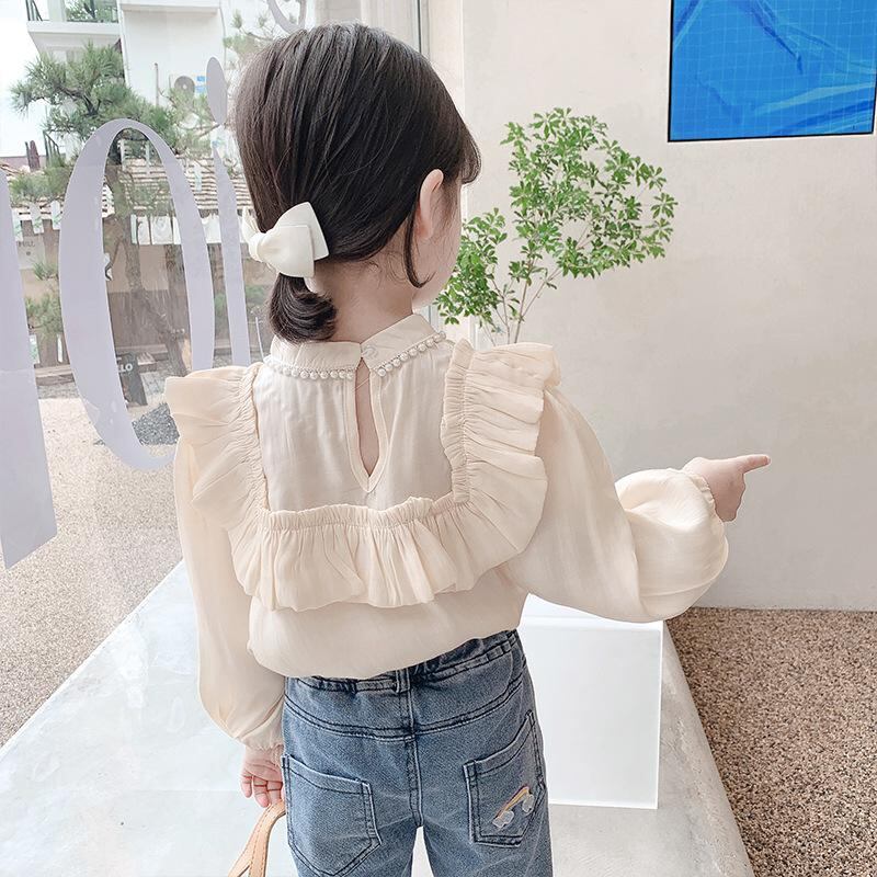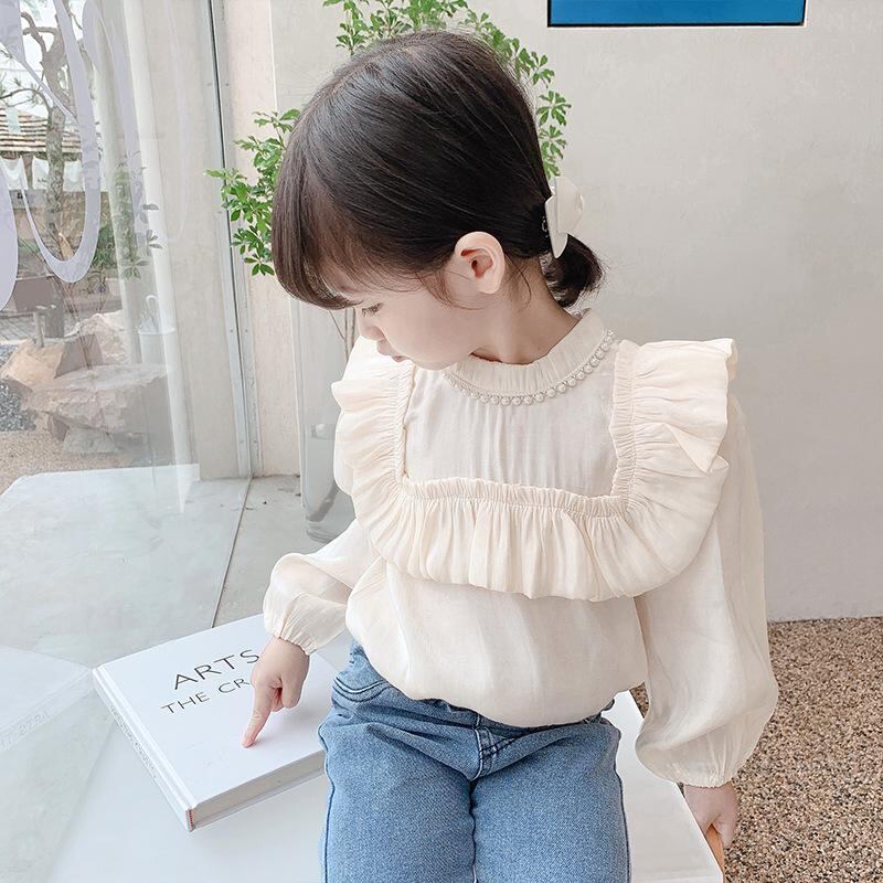 子供服 シャツ 女の子 長袖 春秋 ブラウス キッズ ベビー かわいい 立襟 花柄 無地 トップス 通園 通学 普段着 綿80% ホワイト