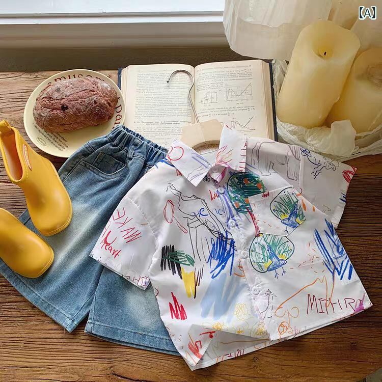 子供服 半袖シャツ 男の子 クール プリント トップス 女の子 夏服 シャツ 綿100% 通園 普段使い