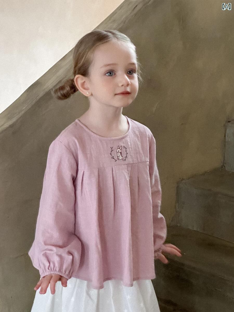 子供服 シャツ 春秋 長袖 女の子 チュニック 花柄 丸首 ブラウス 綿100% ガールズ ベビー 90 100 110 120 130