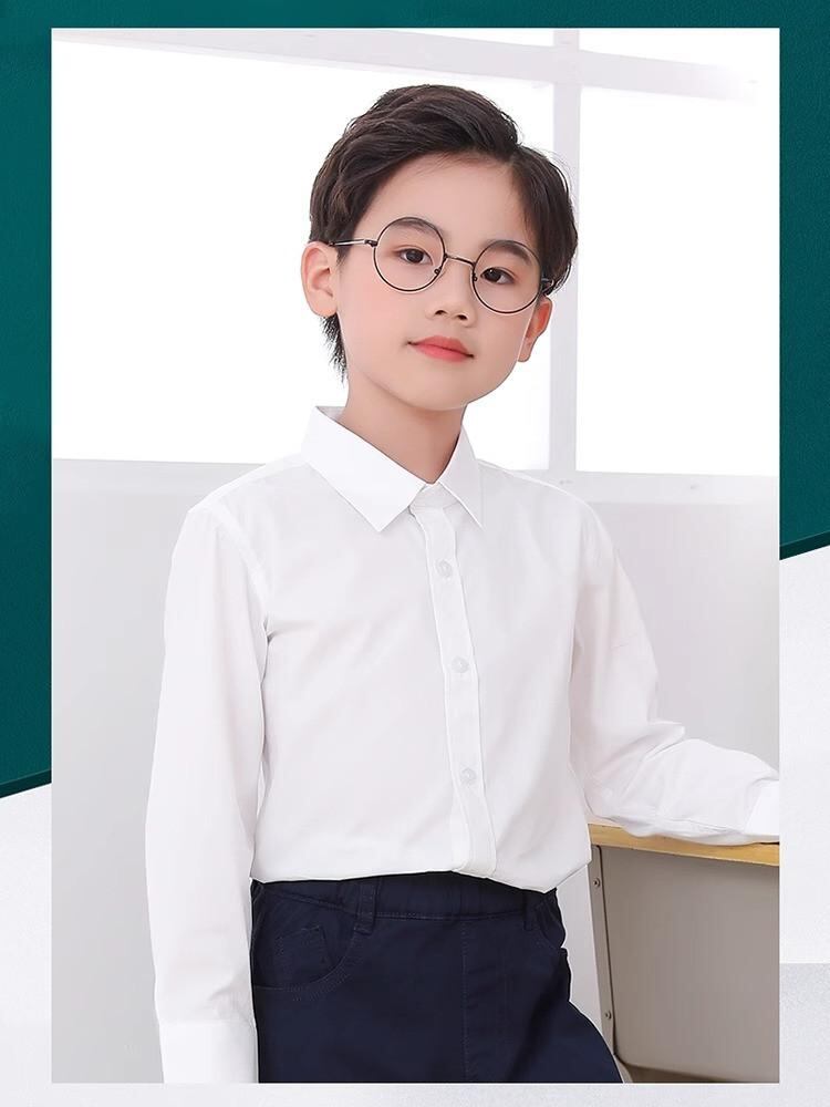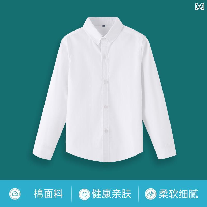 子供服 シャツ 男の子 女の子 コットン 白色 長袖 ブラウス 春秋 全学生 ダンス 発表会 裏起毛 スクールシャツ