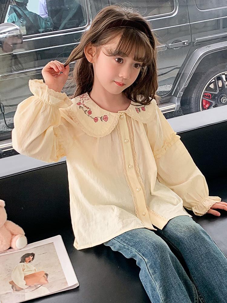 子供服 シャツ 女の子 長袖 コットン 襟付き 花柄 トップス 110cm 120cm 130cm 140cm 150cm 160cm