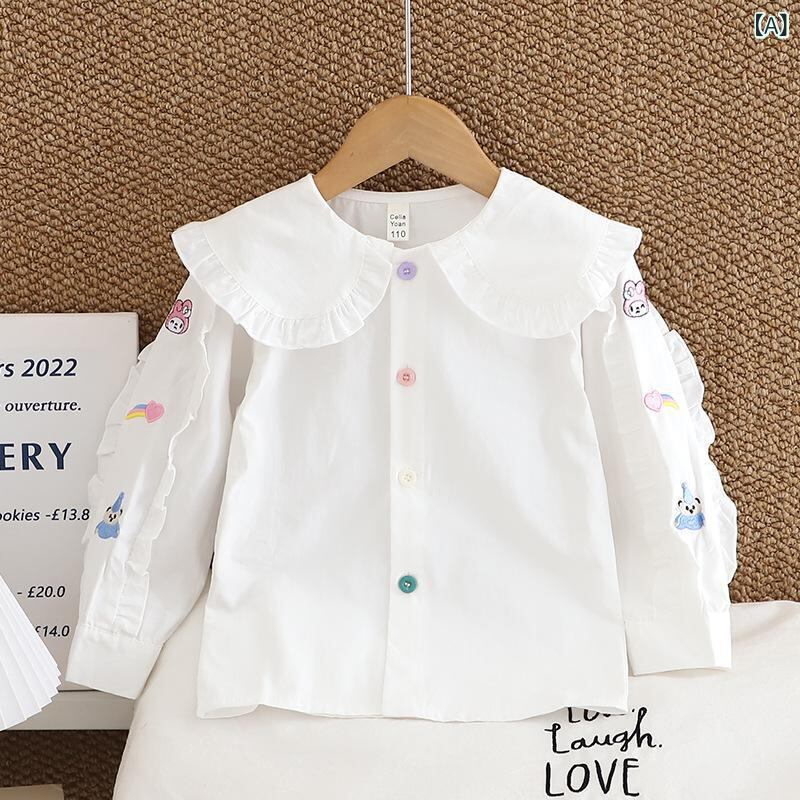 シャツ ガールズ 春秋 長袖 かわいい くま柄 刺繍 綿100% 幼児 普段着