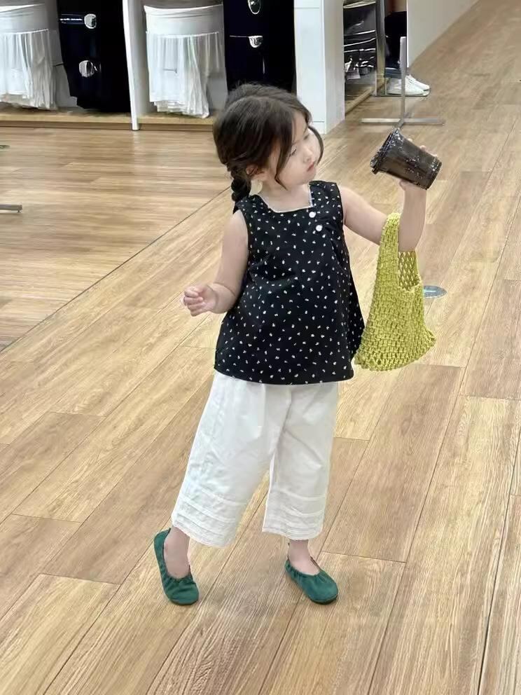 シャツ 女の子 夏服 子供服 ノースリーブ 花柄 ブラウス レース 9分丈パンツ 上下セット 綿100% かわいい おしゃれ 普段着