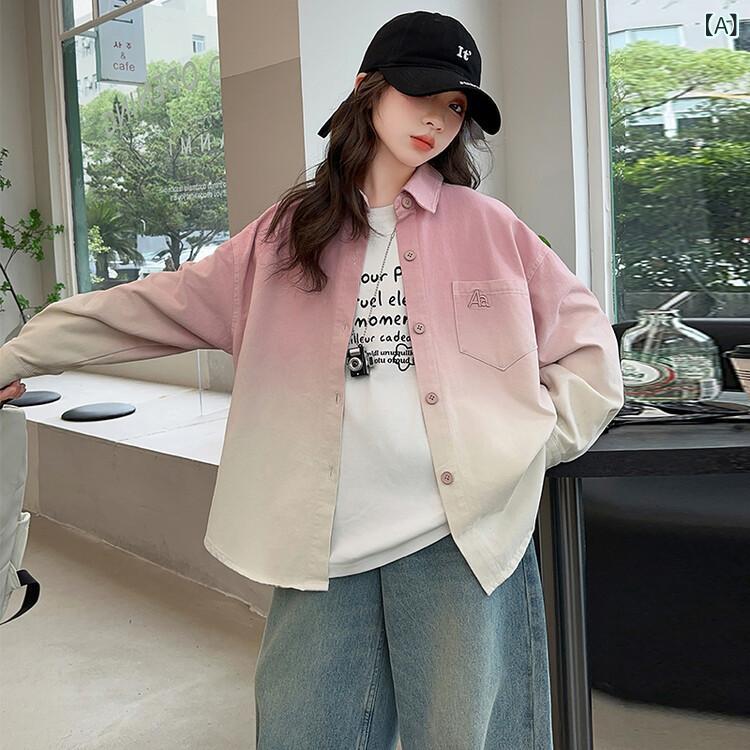 シャツ キッズ 長袖 春秋 グラデーション コットン 女の子 子供服 アウター