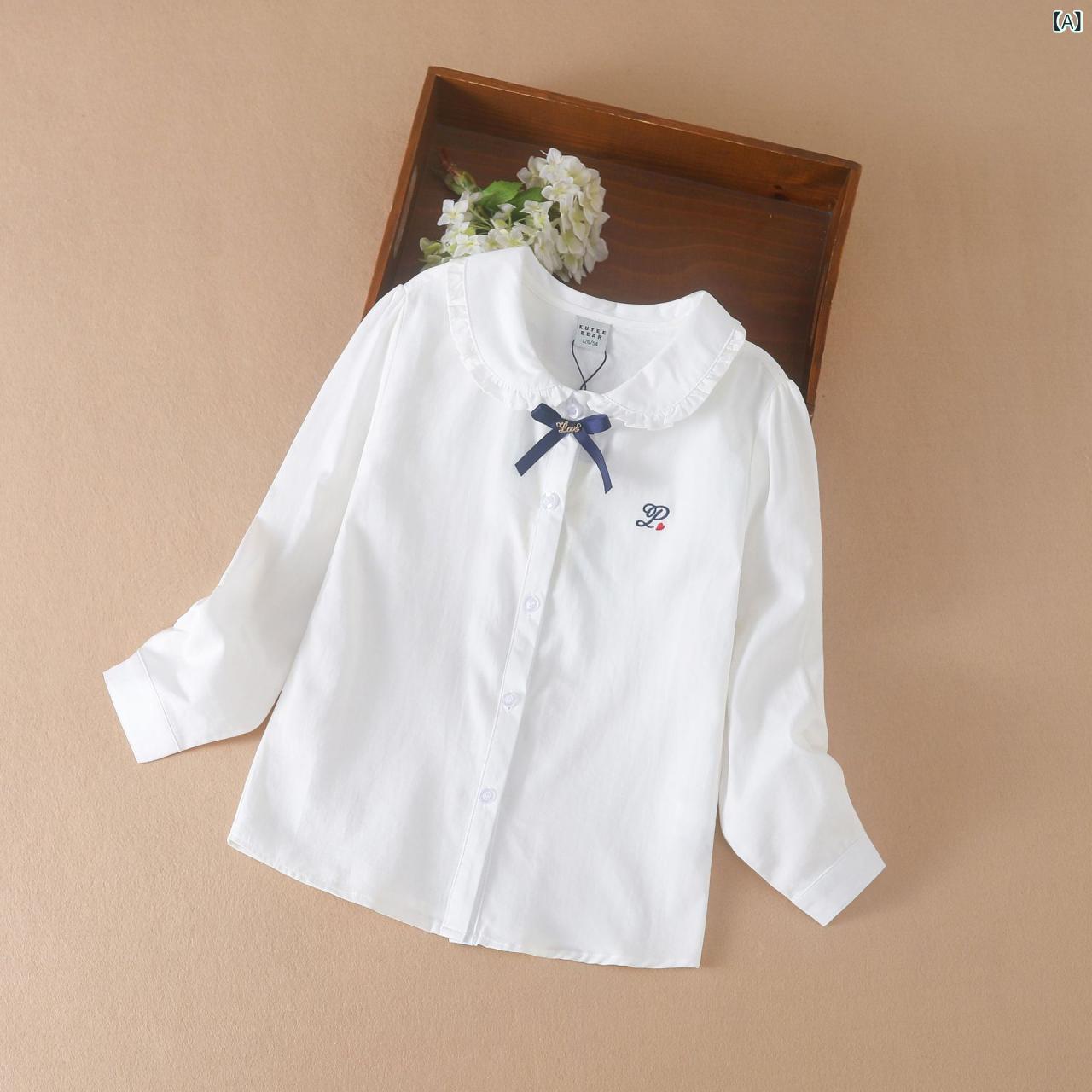 シャツ ガールズ 春物 薄手 通気性 襟付き スクール風 コットン トップス 子供服 ジュニア向け 上質 米白