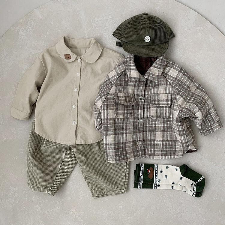 シャツ キッズ 長袖 春秋 韓国子供服 ベビー服 男の子 女の子 カジュアル トップス 杏色 深咖色 73 80 90 100 110cm
