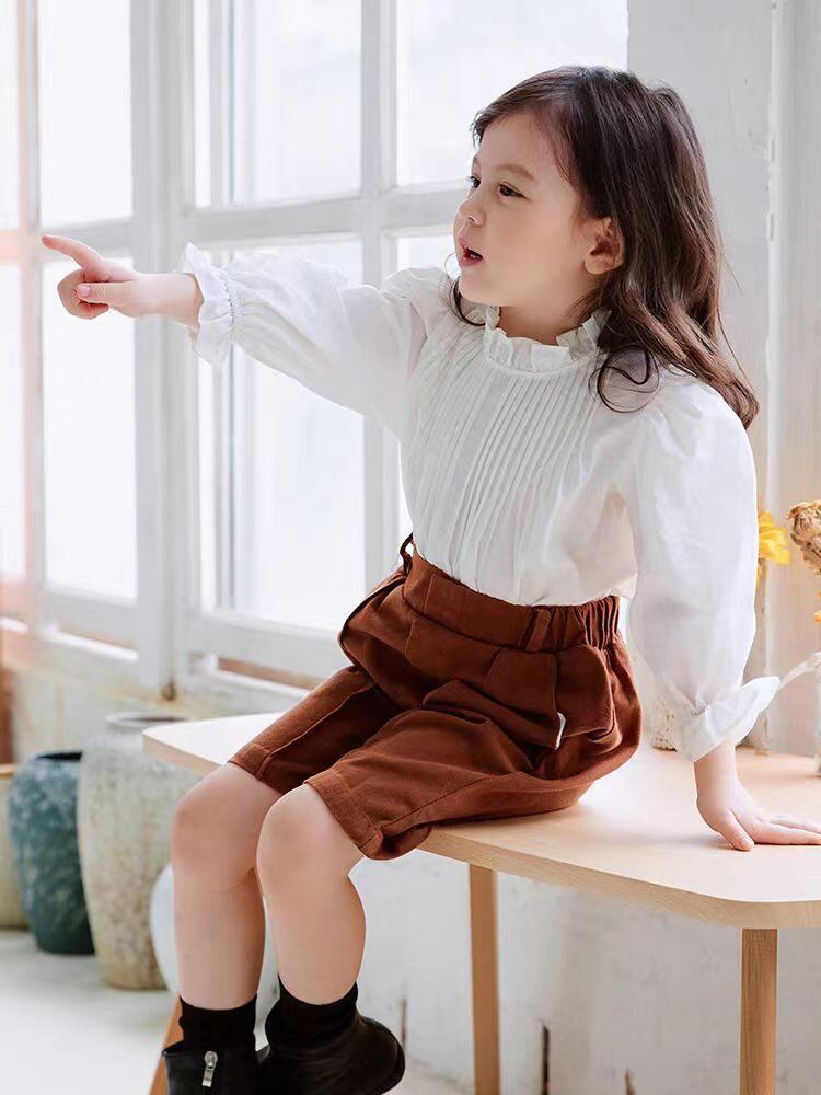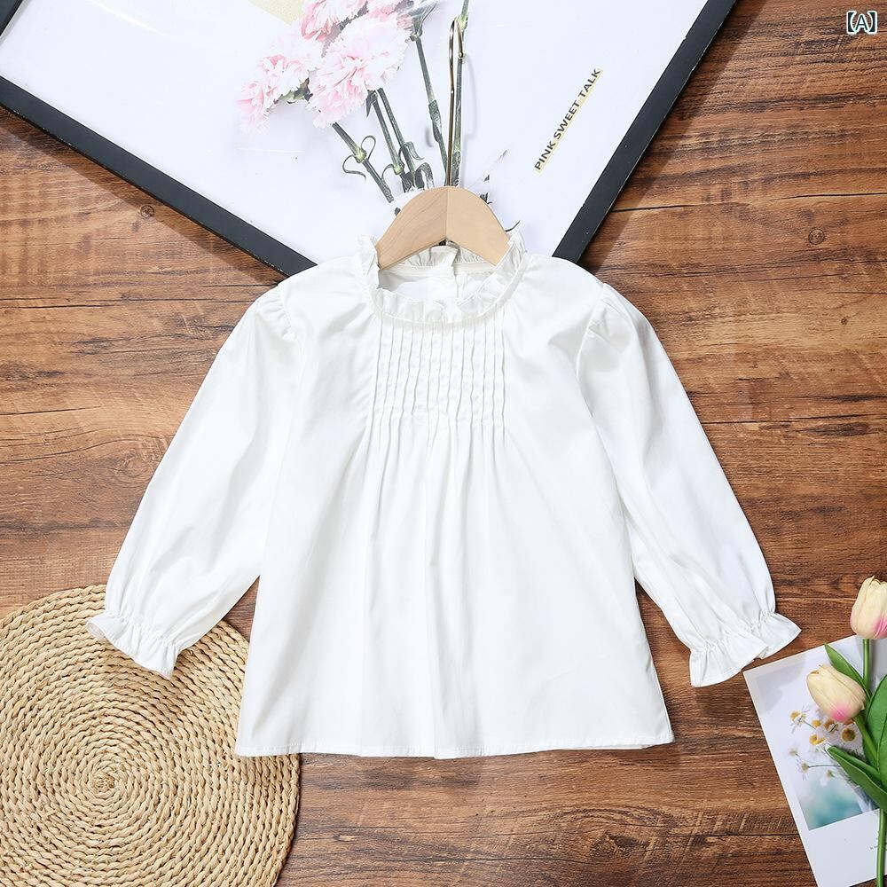 子供服 シャツ 女の子 長袖 ブラウス 立襟 無地 コットン 100% 柔らかい 春秋 トップス 普段使い 100cm 110cm 120cm 130cm 140cm