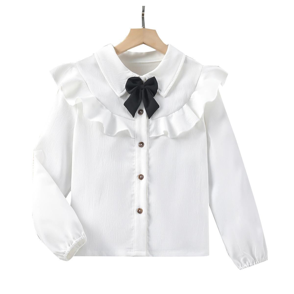 シャツ ガールズ 子供服 フォーマル ブラウス 長袖 蝶結び フリル 襟付き 無地 トップス 普段着 発表会 8歳 9歳 10歳 かわいい