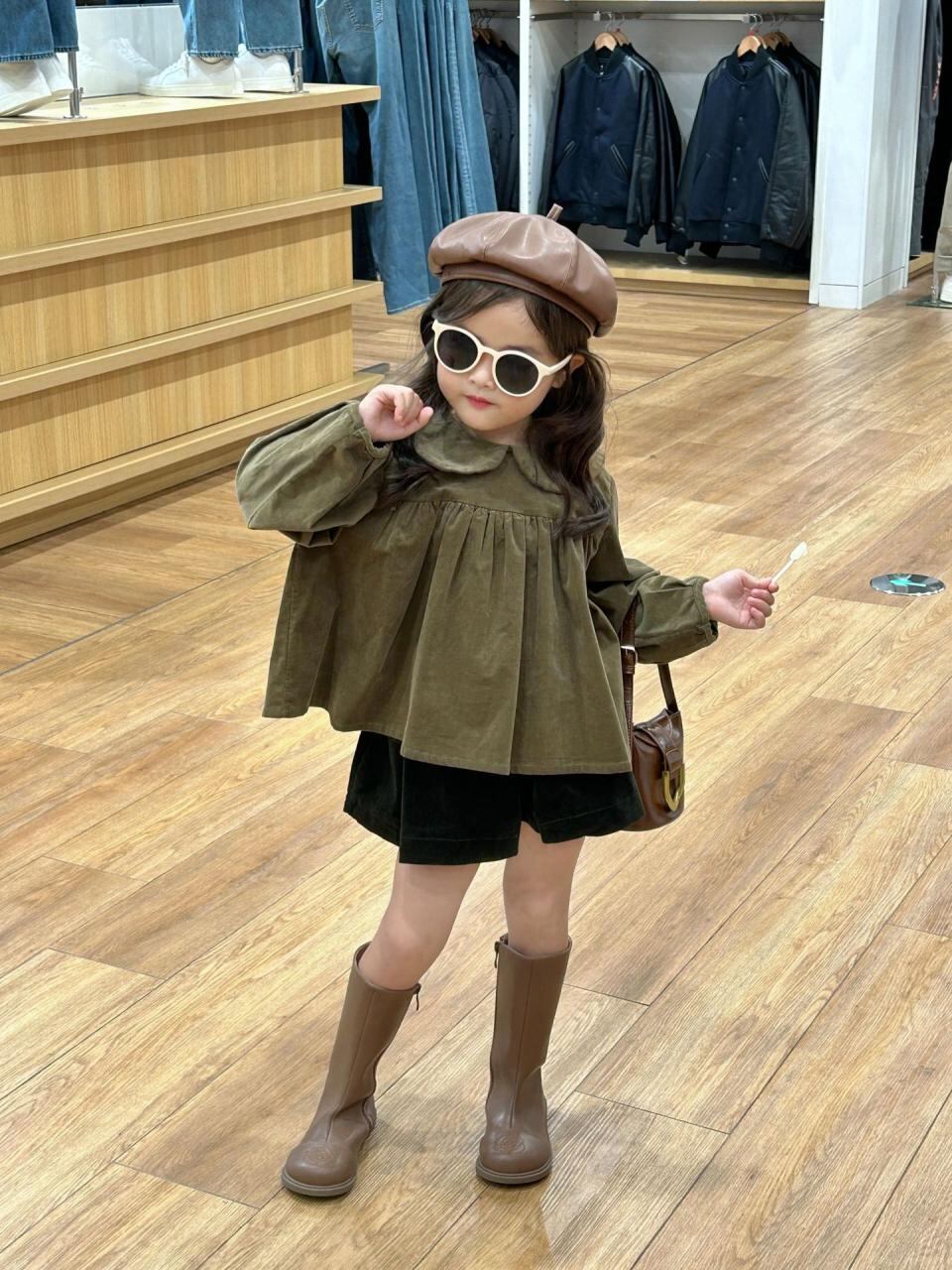 子供服 シャツ ガールズ コーデュロイ パフスリーブ ブラウス スカート 韓国風 秋冬
