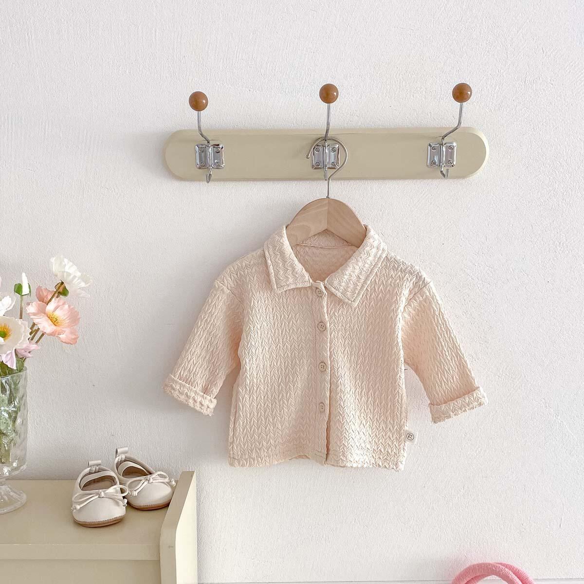 シャツ ガールズ 春秋 ベビー キッズ 韓国風 トップス カーディガン 幼児 女児 子供服 長袖 ポリエステル 杏色 ピンク系