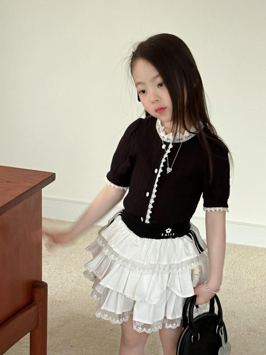 子供服 シャツ 女の子 半袖 夏 レース 襟付き トップス 子供 パール ボタン ブラウス かわいい おしゃれ ガーリー 綿100% 黒