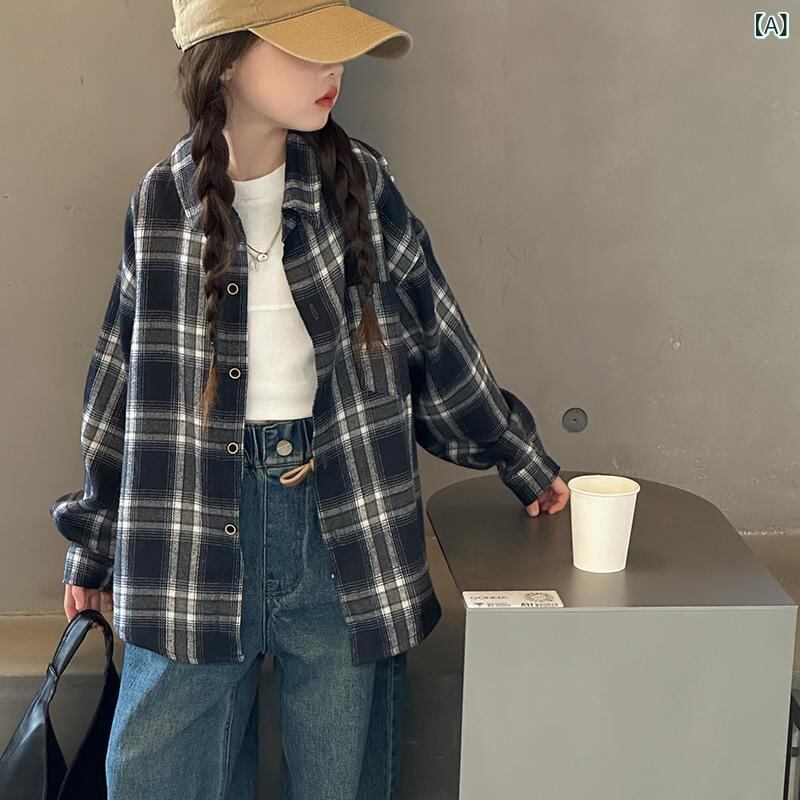 シャツ キッズ 女の子 長袖 春秋 子供 トップス チェック柄 コットン 130 140 150 160 170