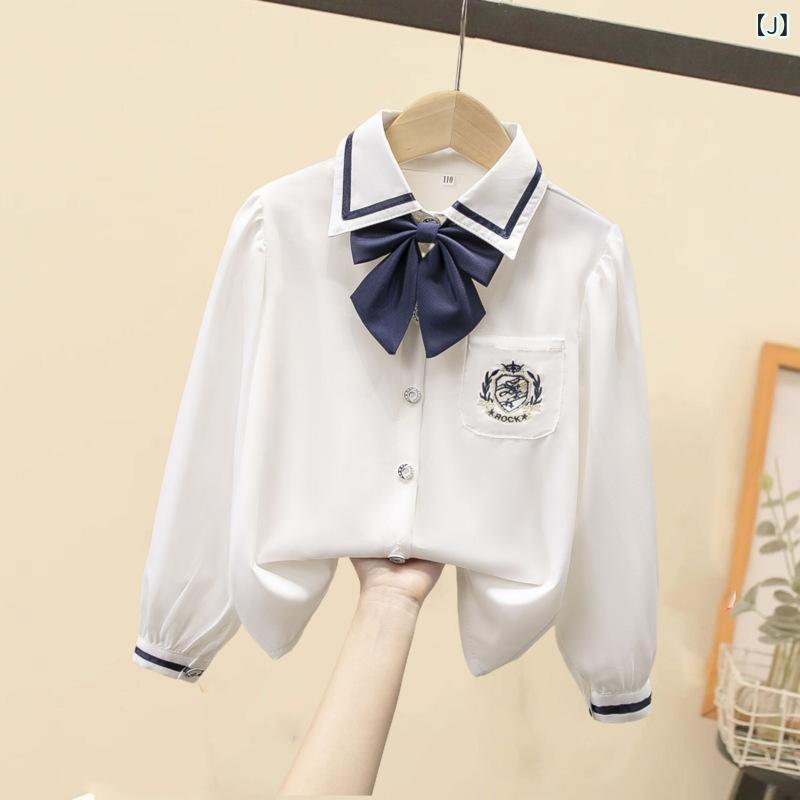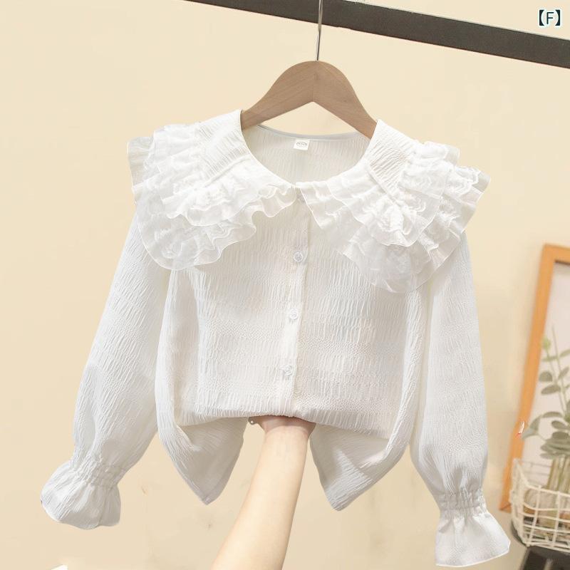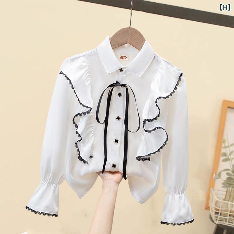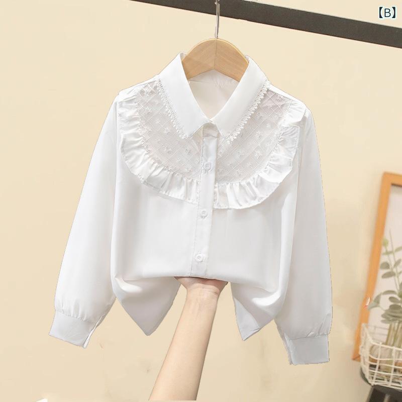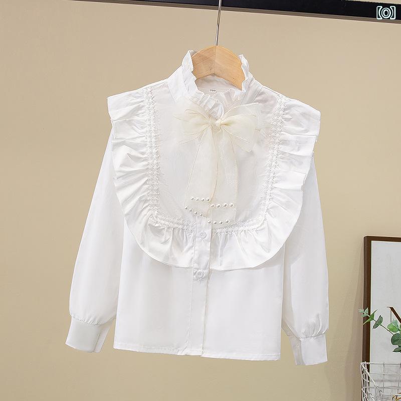 子供服 シャツ 女の子 長袖 春秋 ブラウス 韓国風 フォーマル 学生 制服 発表会 演奏会 冠婚葬祭 白 レース フリル かわいい