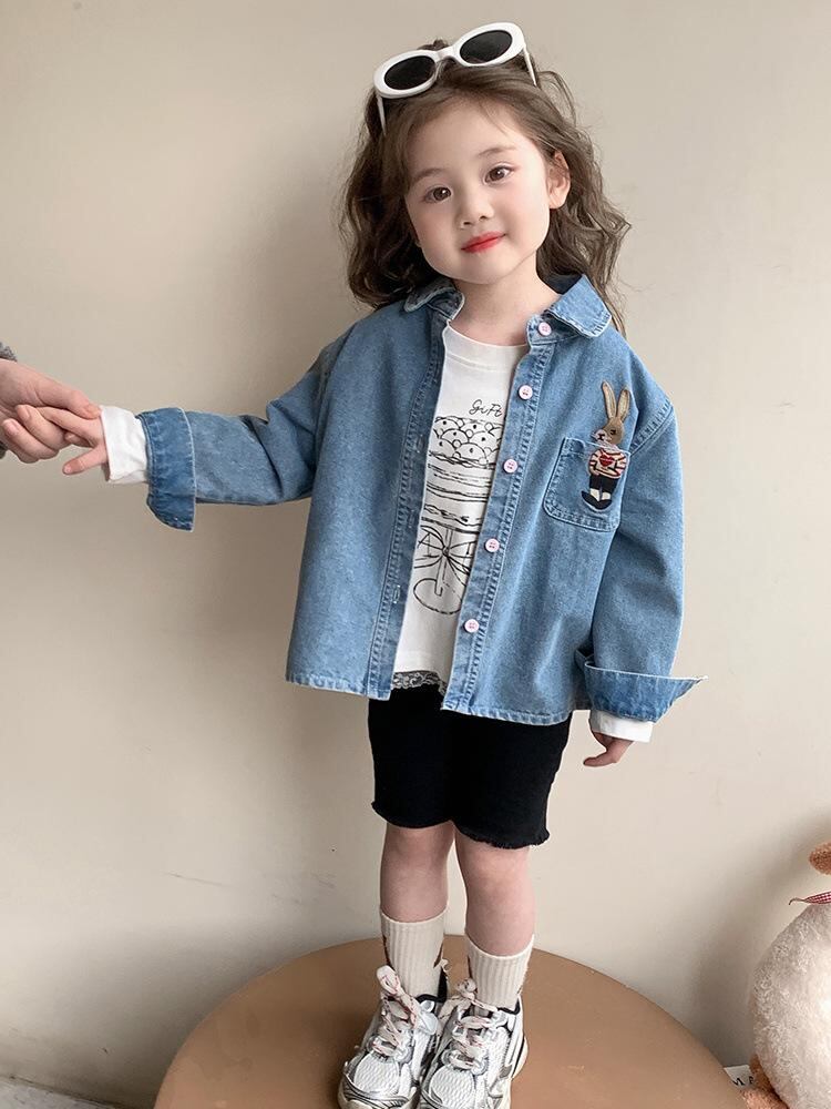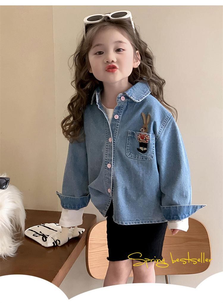 シャツ ガールズ 子供服 デニムシャツ 長袖 春秋 かわいい 韓国風 トップス アウター デニムブルー