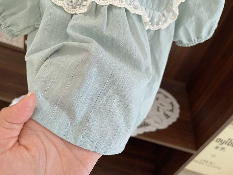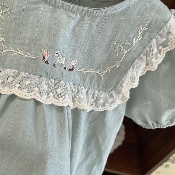 シャツ ベビー服 女の子 半袖 レース 刺繍 丸首 薄手 コットン トップス 80 90 100 110 120 白 水色