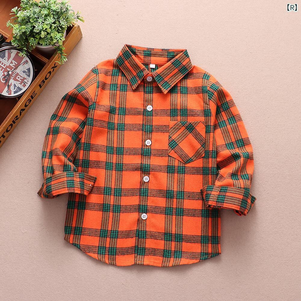 シャツ キッズ 長袖 格子柄 コットン トップス 男女兼用 子供 ベビー 春秋 韓国風 90 100 110 120 130 140 150 160