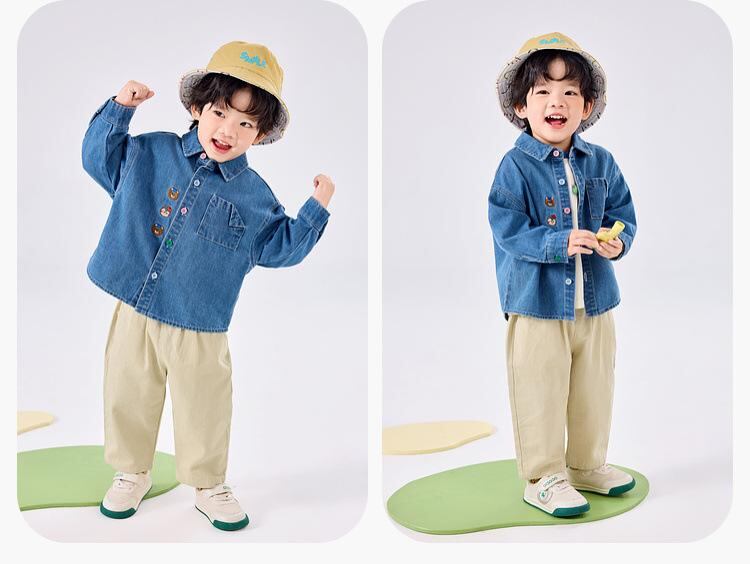 シャツ キッズ 子供服 春秋 長袖 デニムジャケット Gジャン カジュアルパンツ 上下セット 綿 ボーイズ ガールズ 80 90 100 110 120 130cm