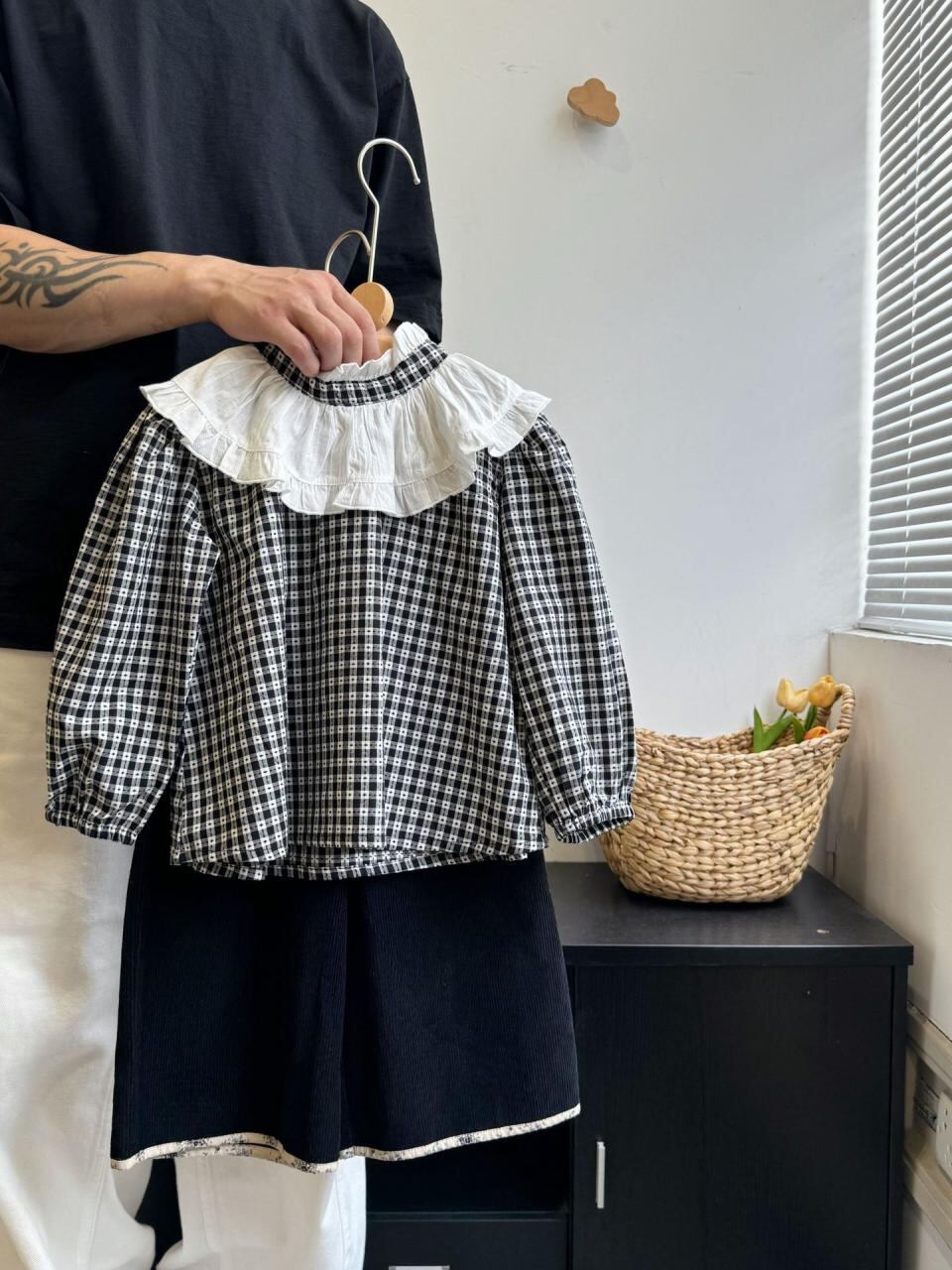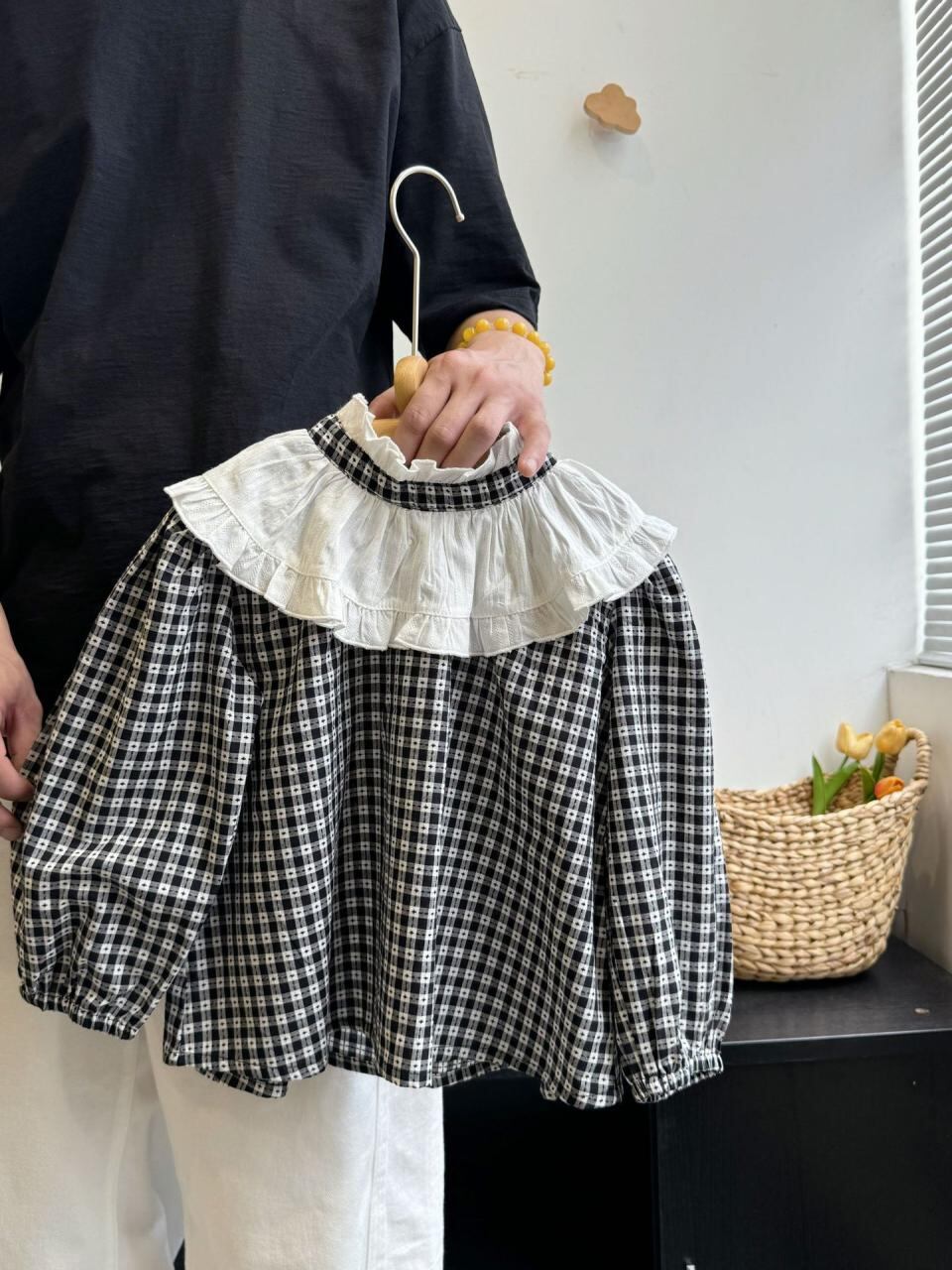 子供服 女の子 シャツ 春秋 格子柄 トップス 長袖 韓国風 かわいい 普段着 ベビー 子供服 ガールズ 丸襟 コットン