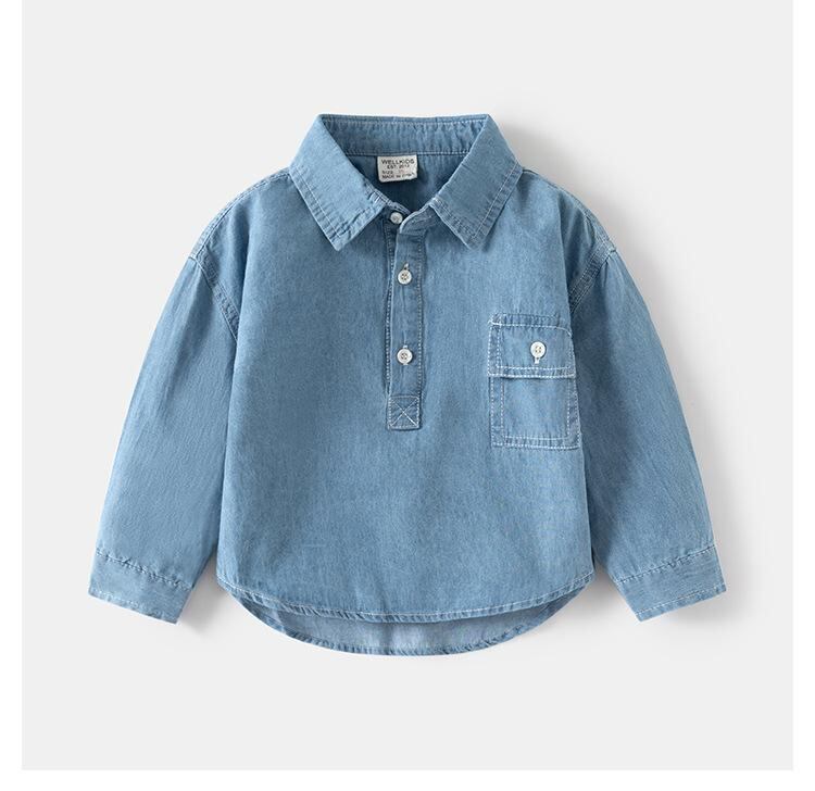 子供服 シャツ ジャケット 男女兼用 長袖 デニムシャツ 綿100% ウォッシュ加工 柔らかい 普段着 90cm 100cm 110cm 120cm 130cm 140cm