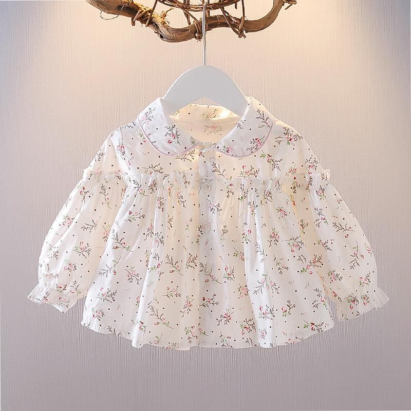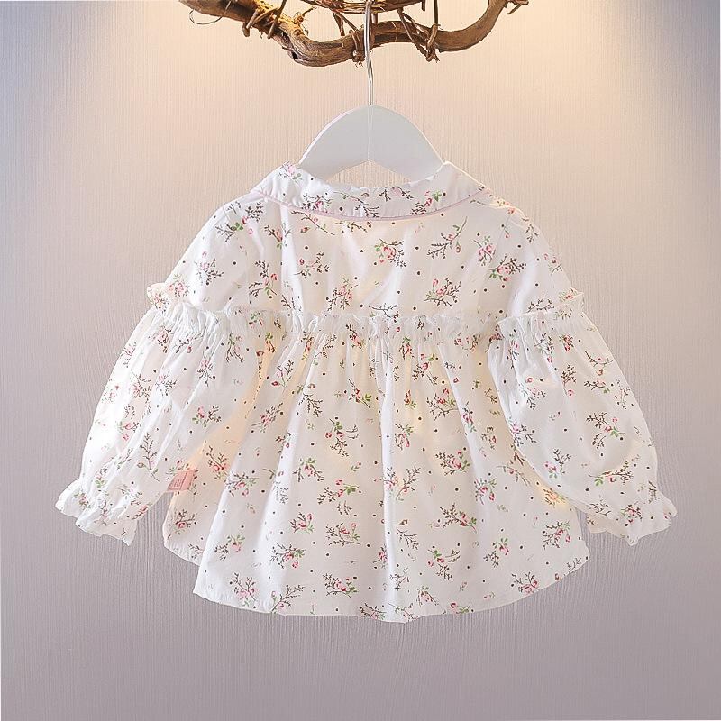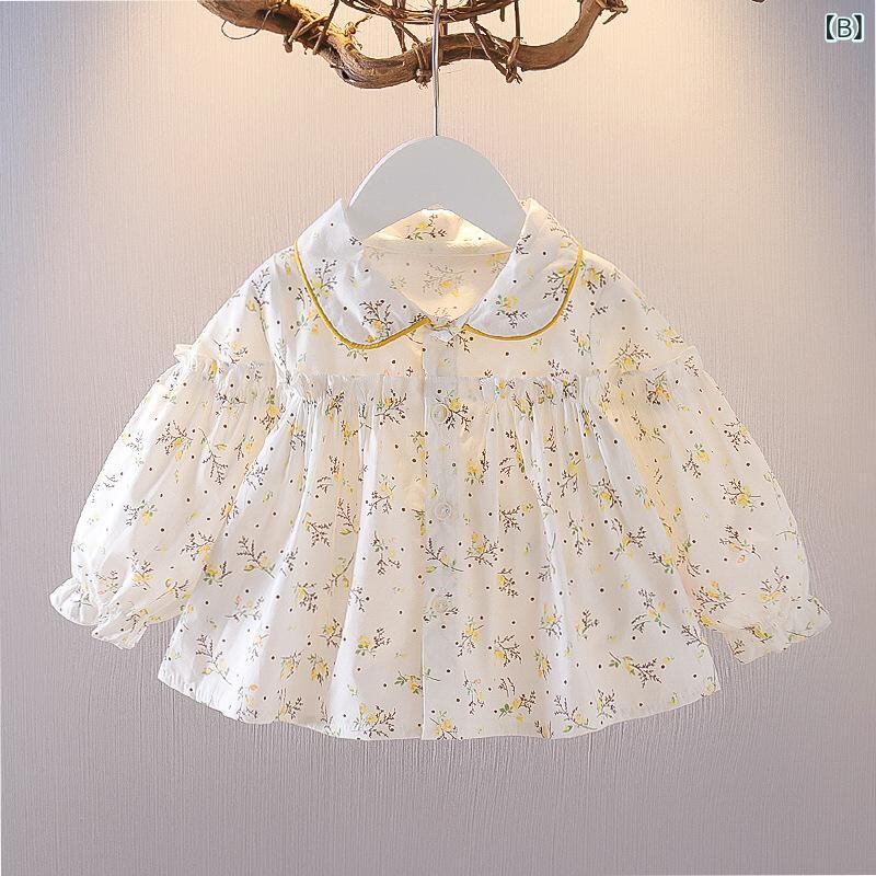 子供服 シャツ 女の子 ベビー 小花柄 ブラウス 春秋 長袖 トップス 綿100% 80cm 90cm 100cm ピンク イエロー かわいい 普段着