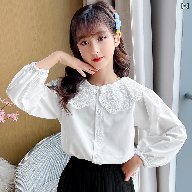 子供服 シャツ 女の子 長袖 白 襟付き 大学生 スクール フォーマル 綿 ポリエステル 春秋