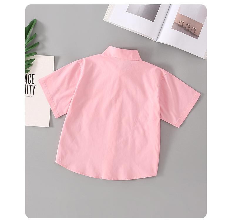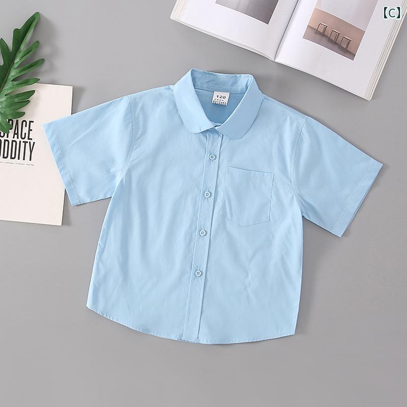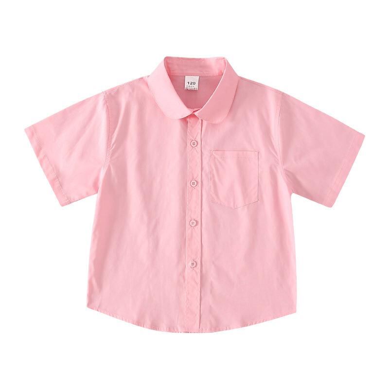 シャツ 女の子 半袖 翻領 ブラウス 子供服 トップス 中大童 コットン 無地 薄手 前開き サマー