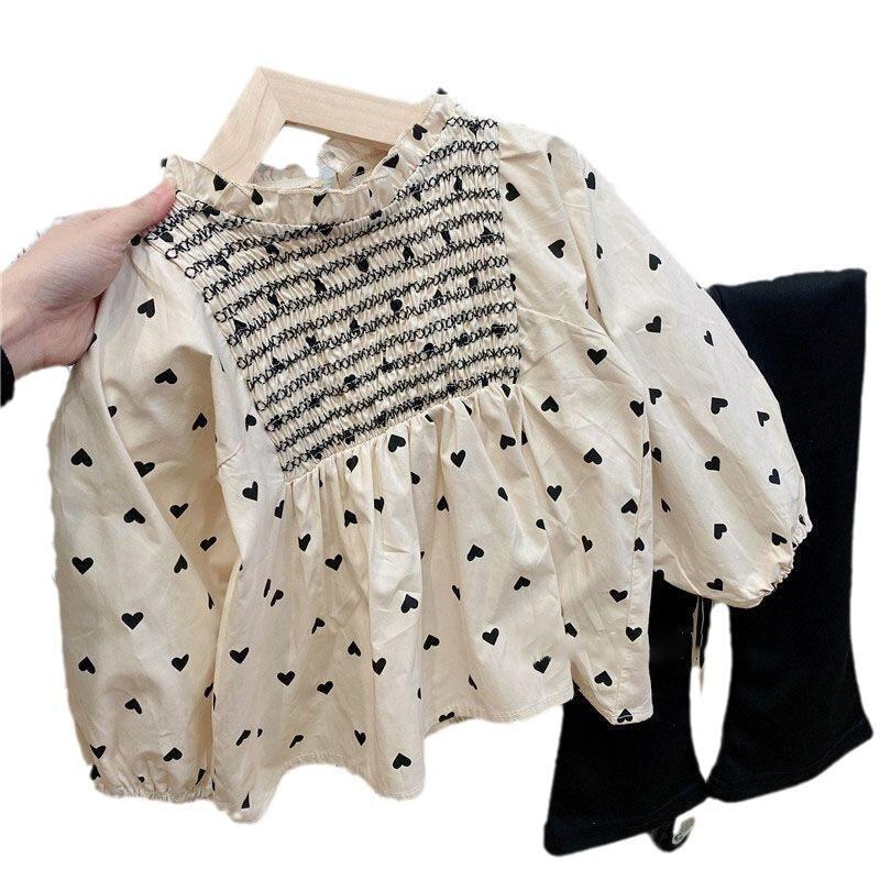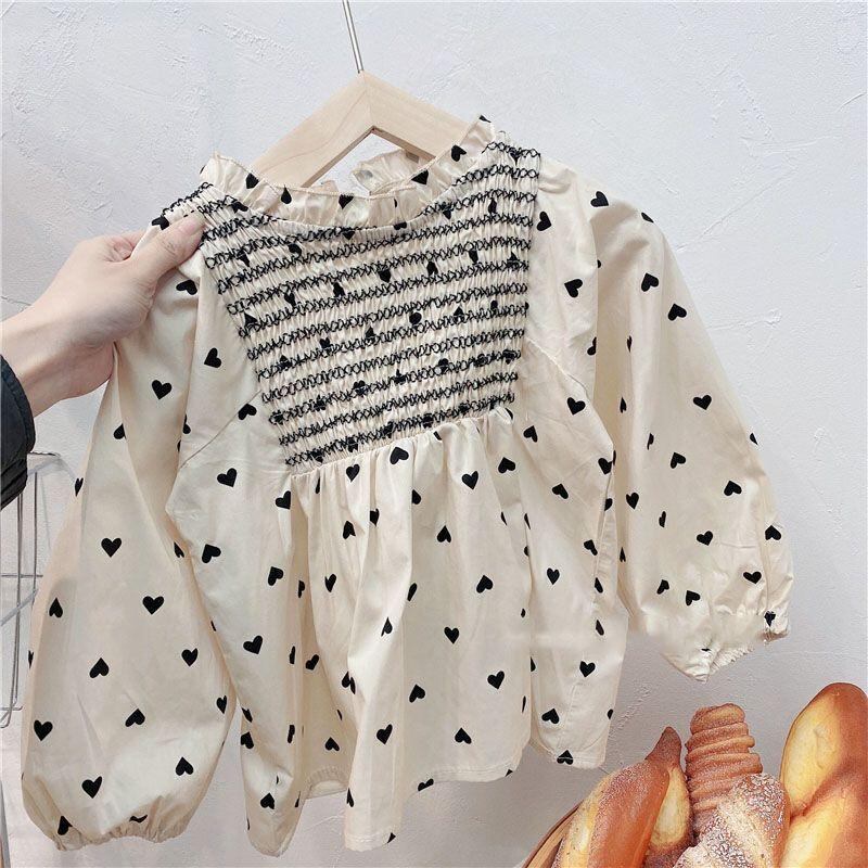 シャツ キッズ 女の子 ハート柄 長袖 春秋 かわいい 普段着 ベビー 綿100% 80 90 100 110 120