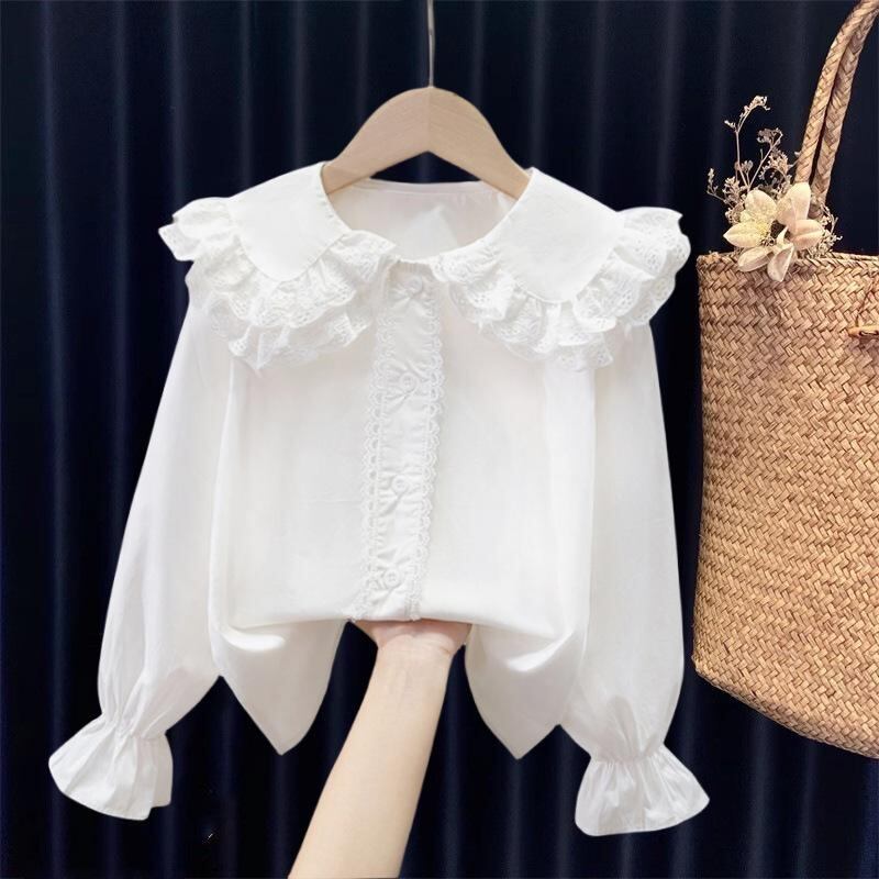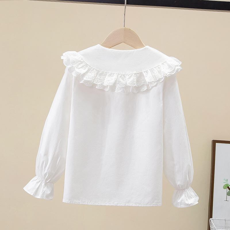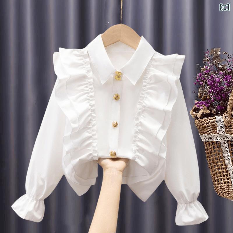シャツ キッズ 子供服 ブラウス 長袖 半袖 純綿 コットン 100% 丸襟 ギャザー 無地 トップス インナー かわいい 女の子 春物