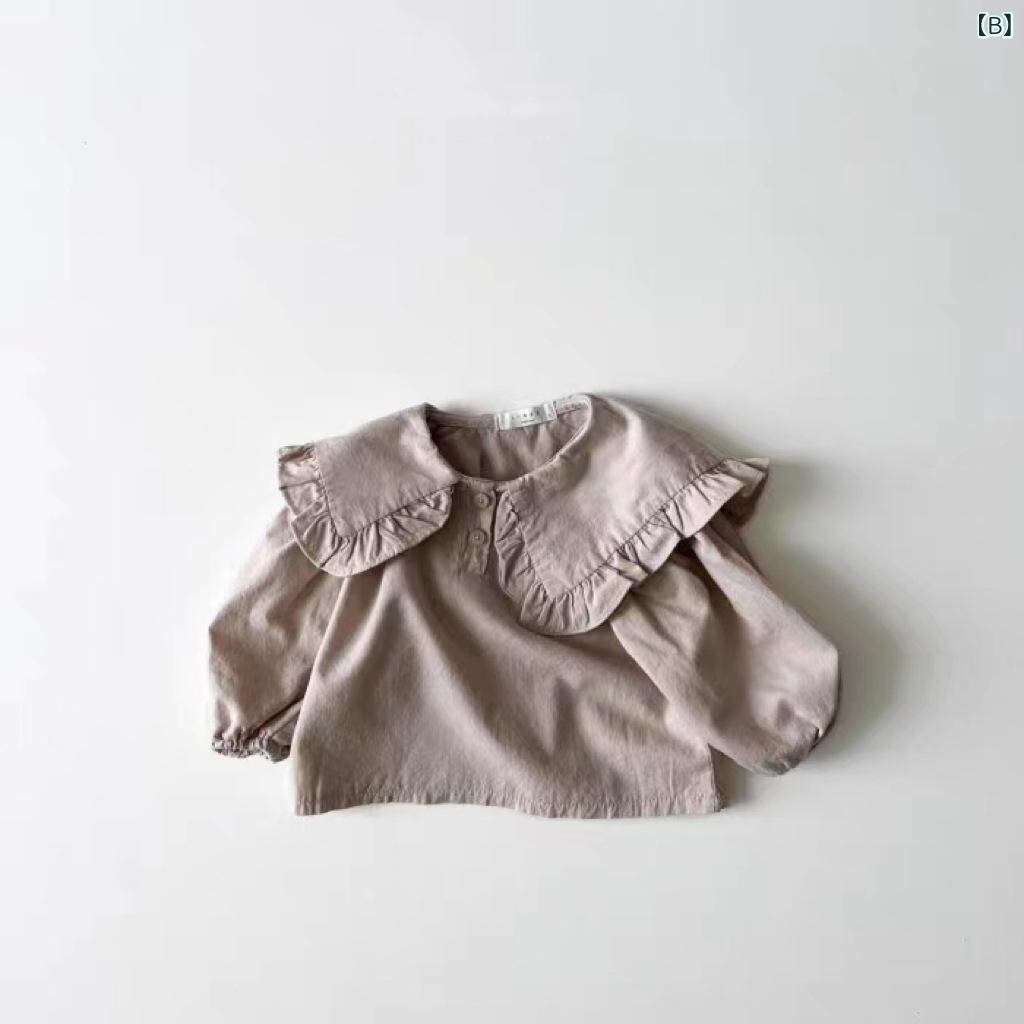 子供服 シャツ 女の 長袖 トップス 綿 襟付き ブラウス 春秋 秋冬 かわいい おしゃれ ガールズ ベビー 米白 浅棕色