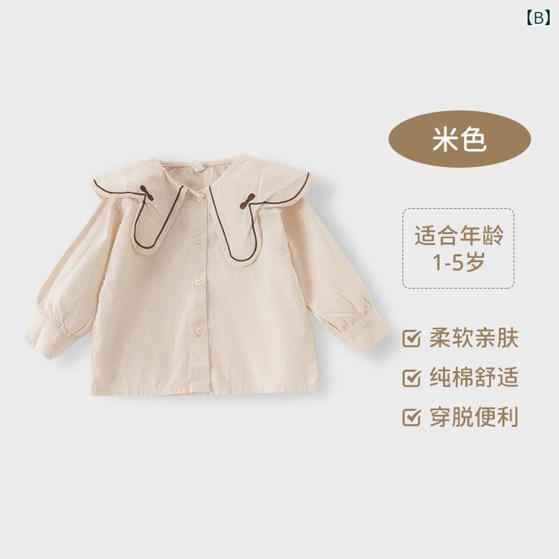 子供服 シャツ 春秋 長袖 トップス カーディガン ベビー服 女の子 幼児 襟付き 無地 かわいい 綿100% 80cm 90cm 100cm 110cm 120cm