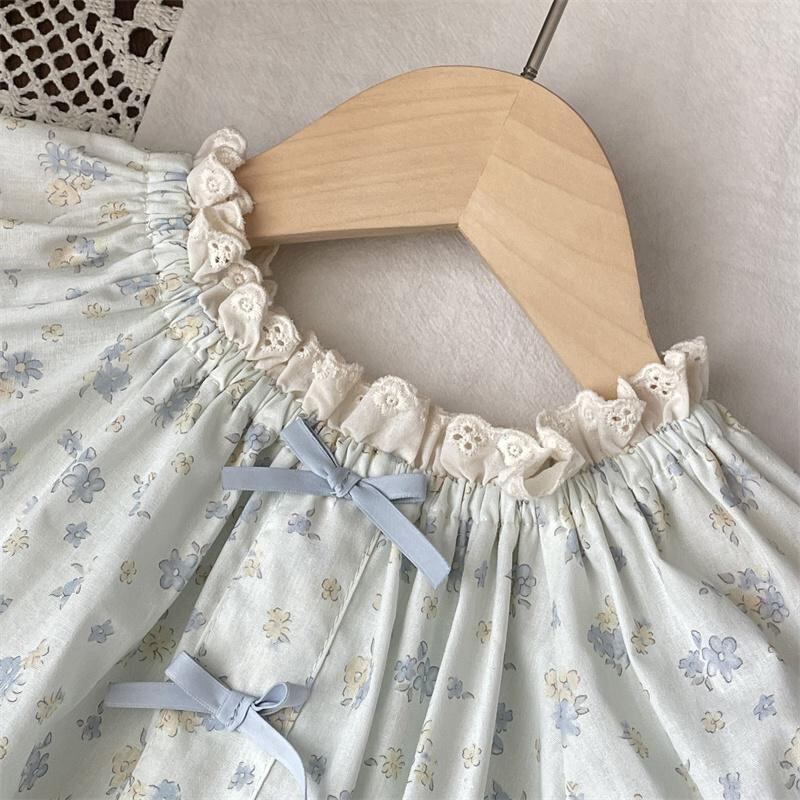 シャツ 女児 ベビー 小花柄 レース フリル 半袖 トップス 綿 春夏 かわいい 快適 90 100 110 120 130 140