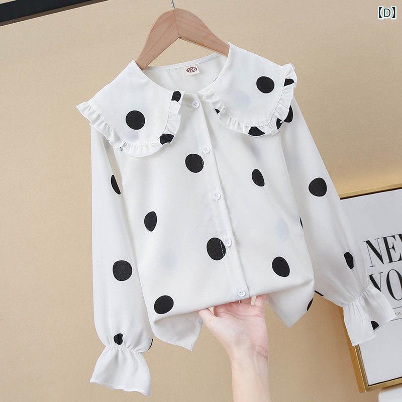 シャツ ガールズ 子供服 トップス 半袖 水玉 ドット柄 丸襟 パフスリーブ かわいい ガーリー 春秋 ピンク系 ホワイト