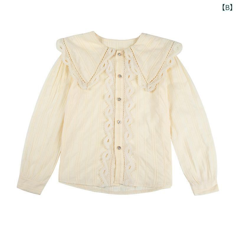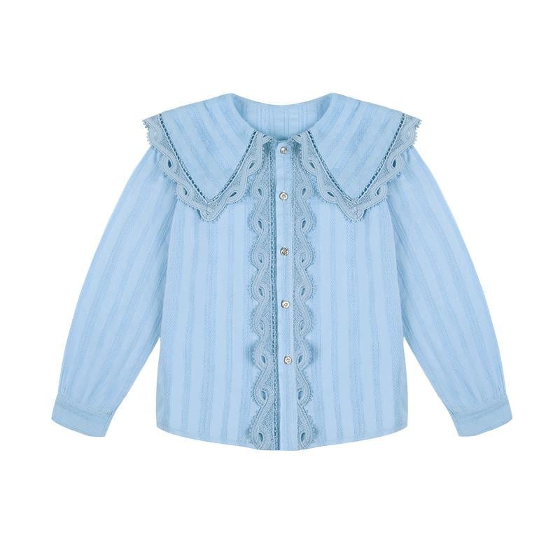 子供服 シャツ 女の子 長袖 白シャツ 春秋 おしゃれ かわいい 子供 シャツ ブラウス トップス 普段着 発表会 入園式 卒園式 キッズ ガールズ ブルー 青 杏色