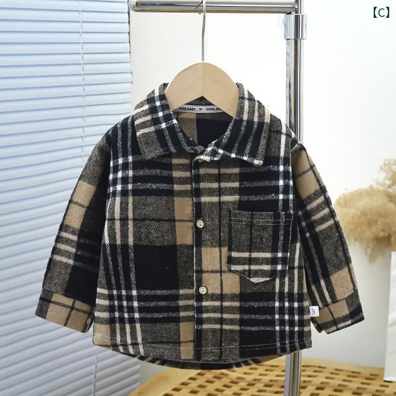 シャツ キッズ 長袖 格子柄 男女兼用 子供 襟付き コットン混紡 春秋 冬 ブラウン ピンク グレー ブルー ブラック 90 100 110 120 130 140 150 160cm 韓国風 かわいい 普段着