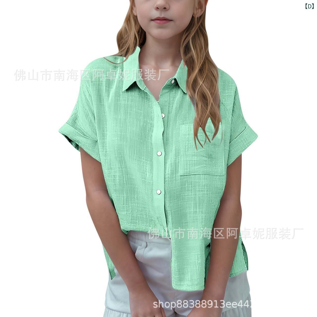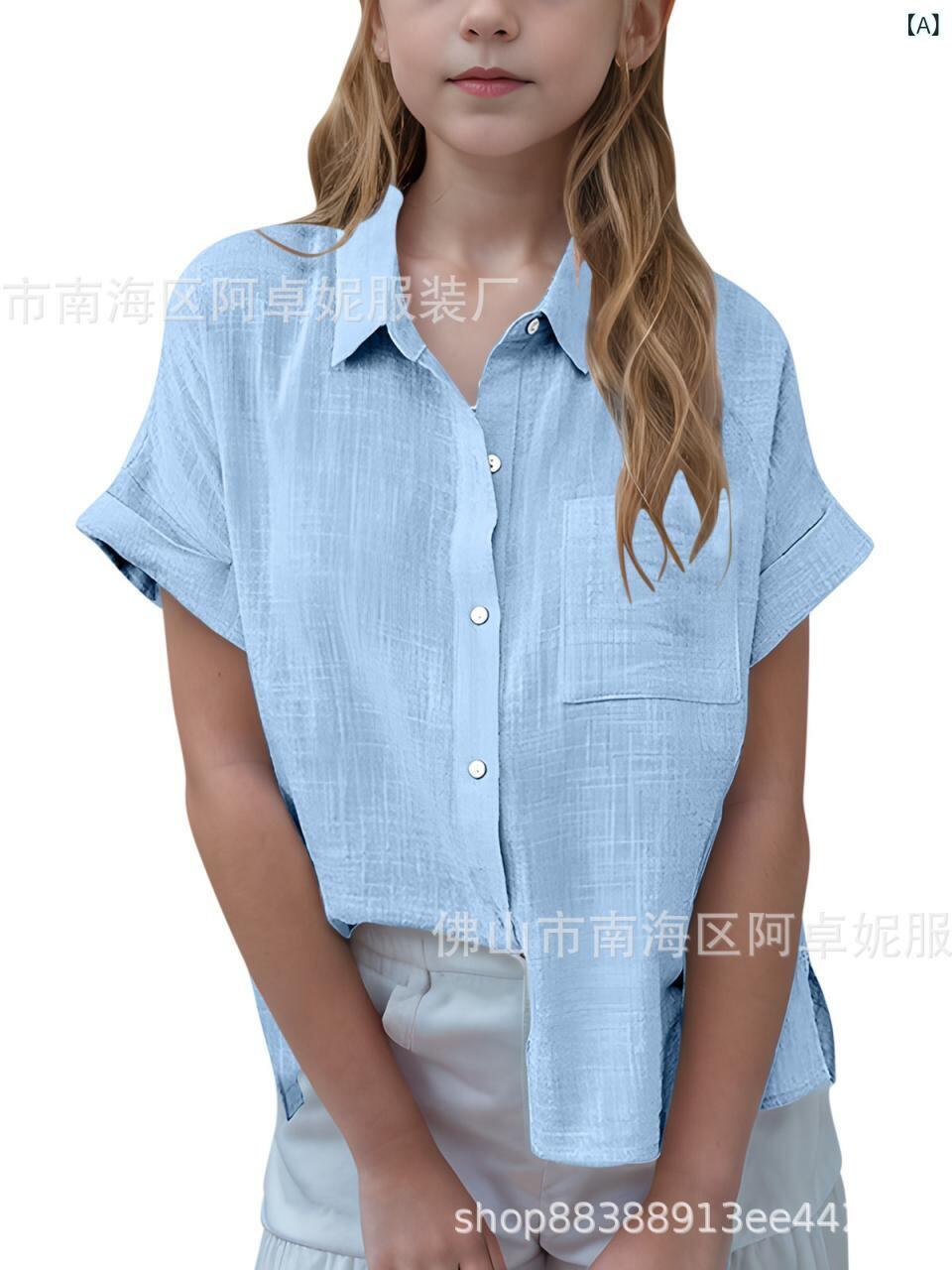 子供服 ガールズ シャツ 半袖 綿100% ブラウス カジュアル ゆったり 薄手 ピンク系 ブルー系 春夏