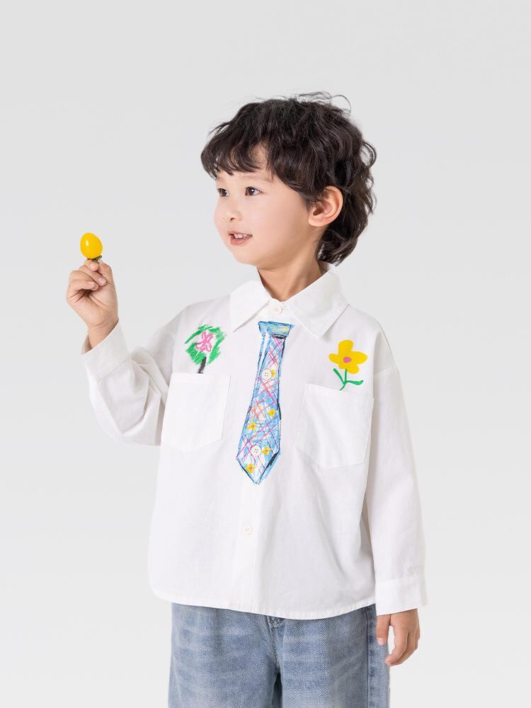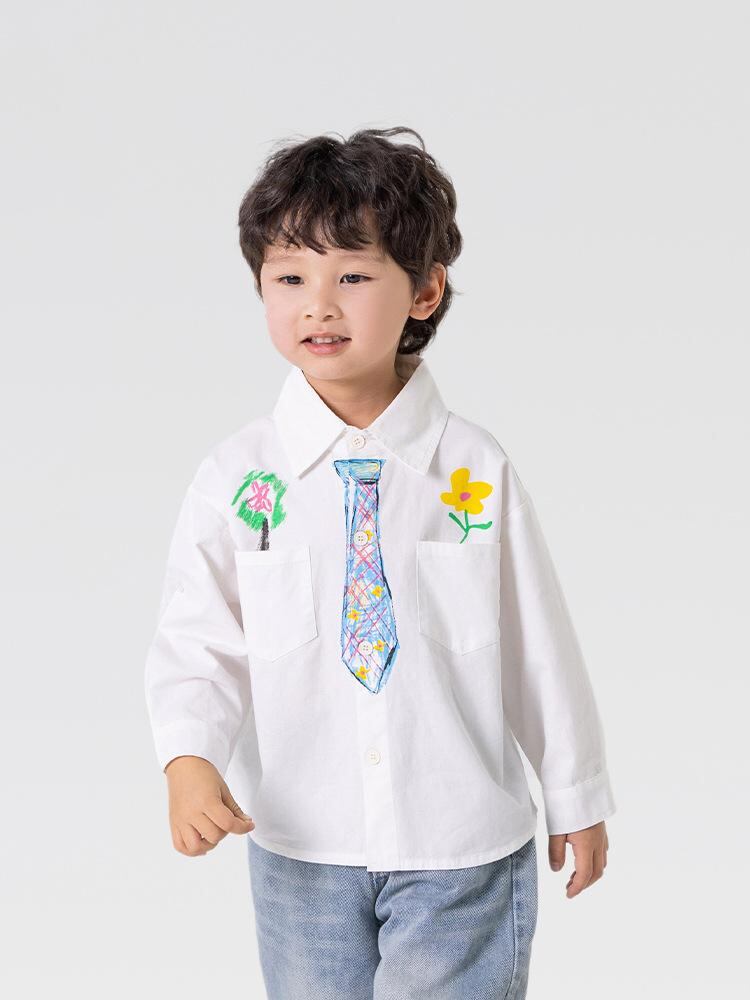 子供服 シャツ 春秋 長袖 かわいい カートーン プリント トップス 男女兼用 落書き 襟 綿100% 普段着 おしゃれ着