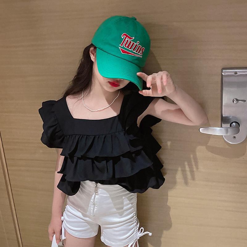 シャツ 女の子 半袖 フリル袖 ブラウス 夏 中大童 トップス カットソー かわいい 韓国風 子供服 110cm 120cm 130cm 140cm 150cm 160cm 170cm